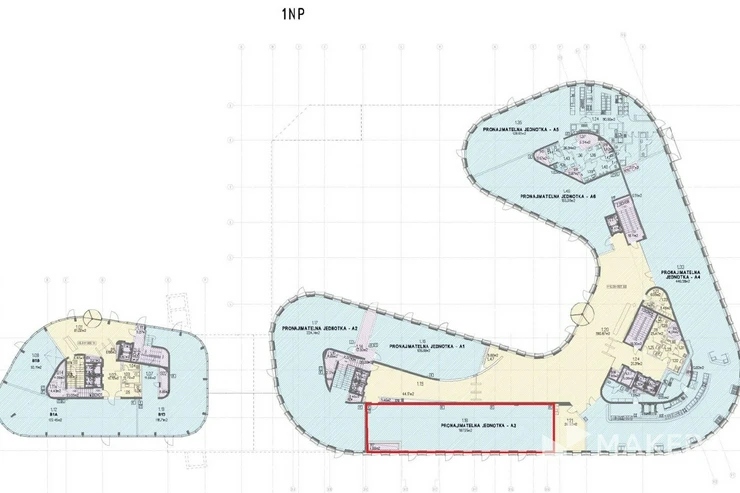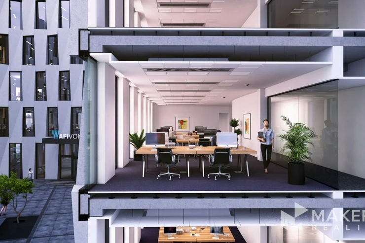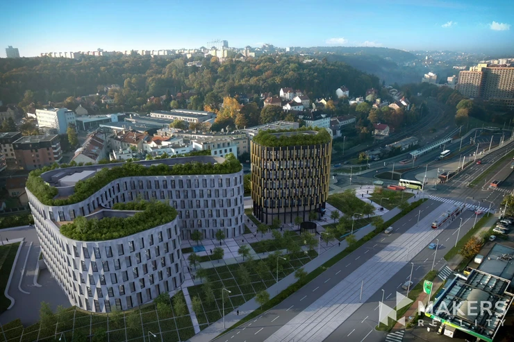 We are pleased to offer modern office spaces for rent in the AFI VOKOVICE administrative complex. Designed by the renowned architectural studio DAM architekts, this complex comprises two buildings with six and eight above-ground floors, offering a total rentable area of almost 14,000 m2. AFI VOKOVICE provides highly flexible solutions for demanding tenants seeking modern office spaces with the latest technologies and original architecture. The complex is situated in an attractive location that allows easy access to the city center and the international airport. The buildings are designed to be energy-efficient and have earned the LEED Platinum certification (environmentally friendly and reduce operating costs).