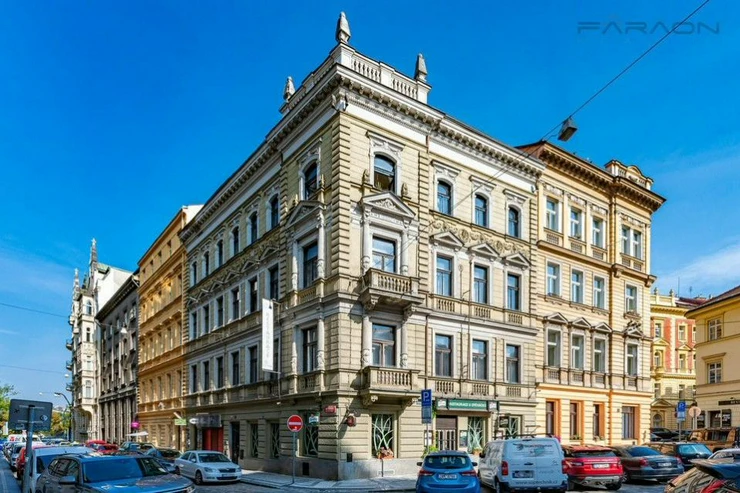 Representative office spaces with a total area of 212 m2, after complete reconstruction, located on the 2nd floor of a renovated apartment building with an elevator, in the center of Prague, on Na Struze street, just a few steps from Prague's Žofín, Vltava river and the National Theater.