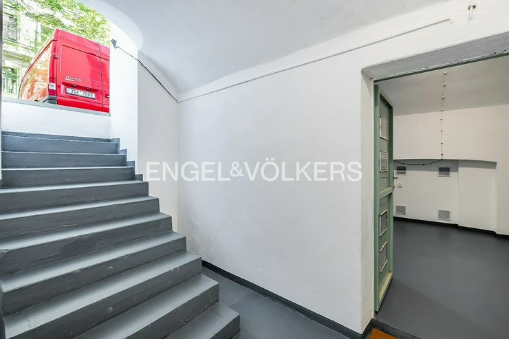 The space has a separate entrance from the street and is accessible via a staircase. The building is accessible 24 hours a day, 7 days a week. The floor is made of durable concrete, ideal for storing goods and handling heavier materials. The windows face the street and are secured with external bars.