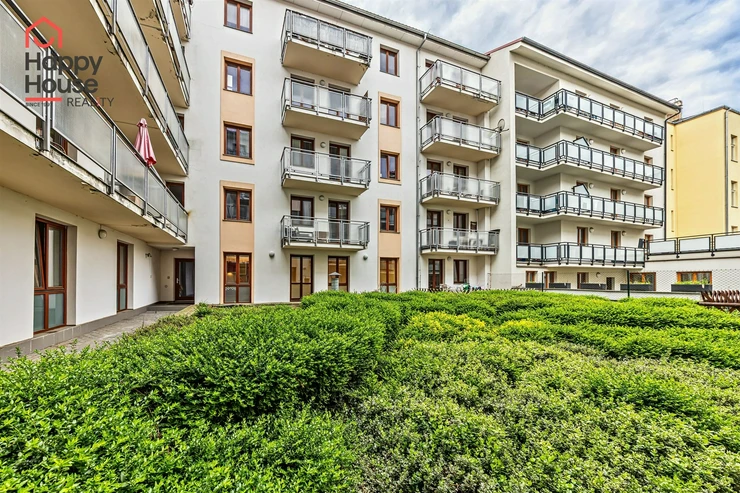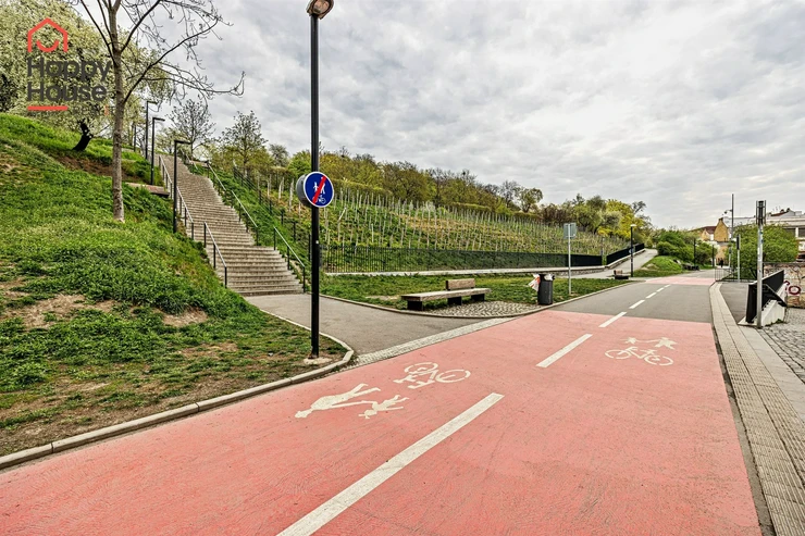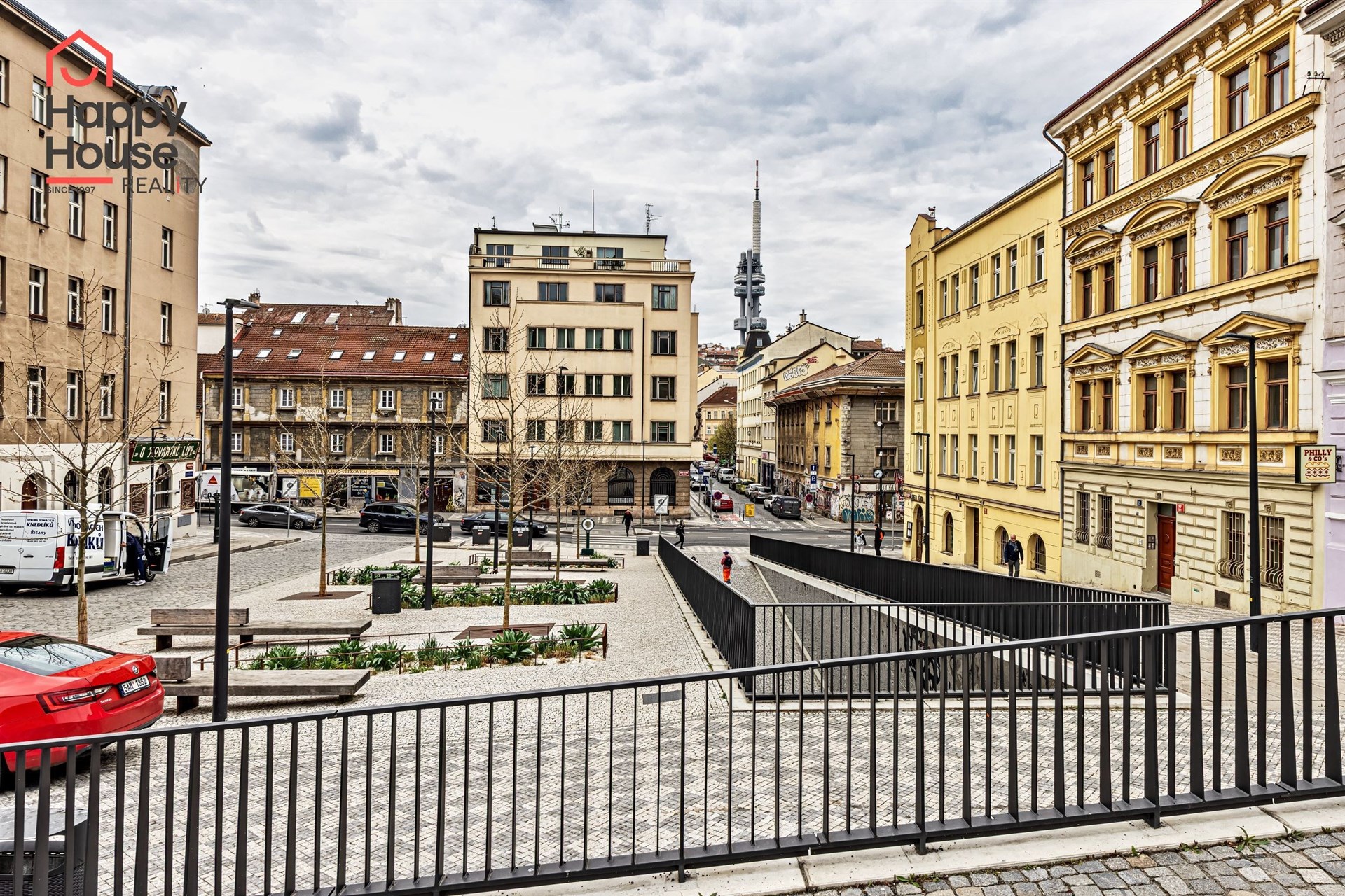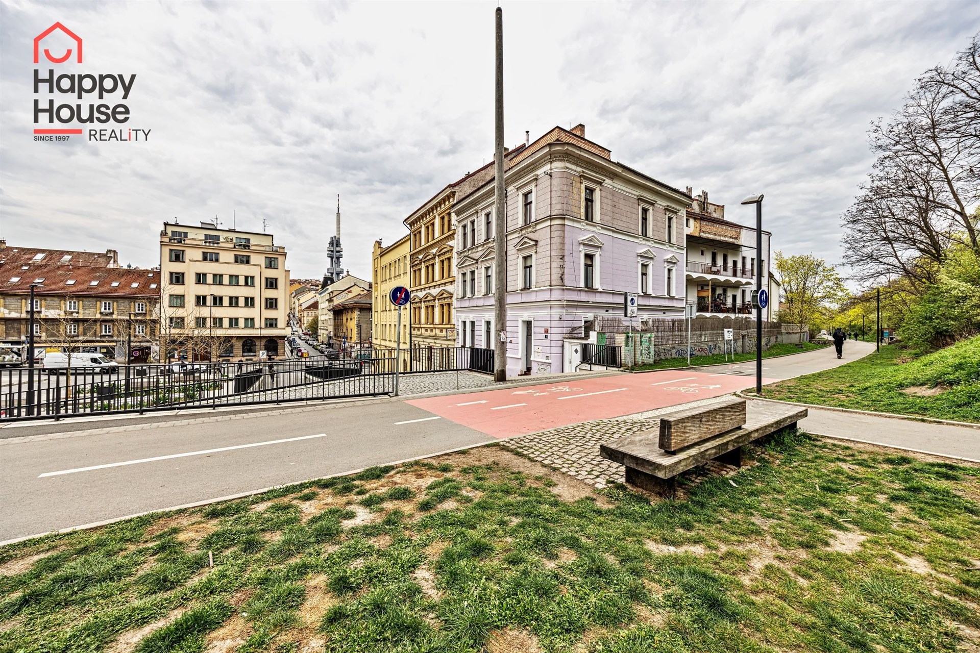 The building is located right next to Vítkov Hill park, and not far from Holy Cross Hill park. All civic amenities are in the vicinity. There are several cafes and shops nearby. There is very good access to the city center; a bus stop is right in front of the building or a 7 min walk to Křižíkova metro station B.