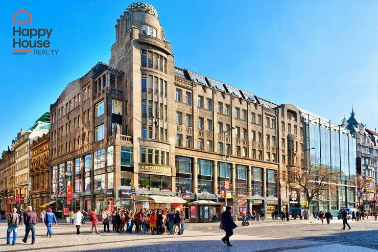 A very busy location with a huge movement of tourists right next to the Můstek metro station A/B. Tram and metro station C are nearby. Walking distance to the Main Train Station or Masaryk Railway Station.