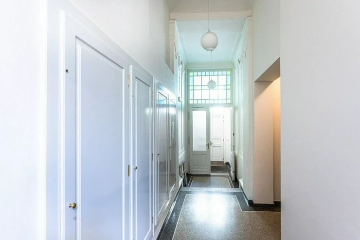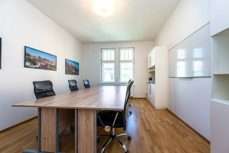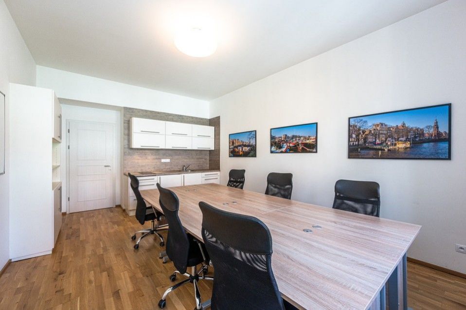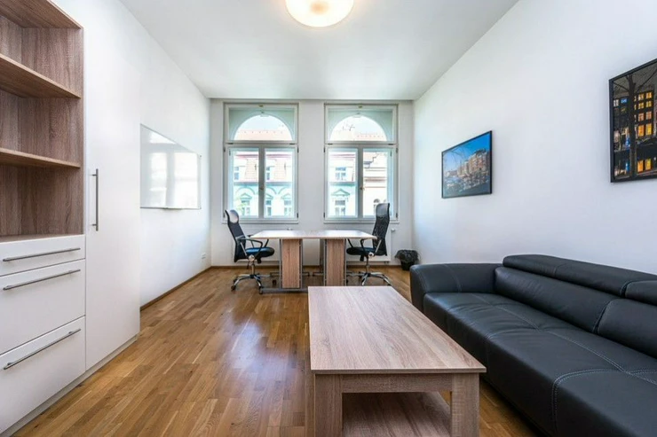 Private, representative, furnished office for rent on the 4th floor of a sensitively renovated Art Nouveau building from 1905, with an elevator, on Křižíkova Street, in Prague's Karlín, just a 5-minute walk from the metro station B.