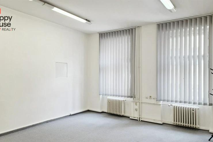 Rental of a larger, unfurnished office measuring 28.41 sqm on the 2nd floor of an office building in Prague 1 New Town. Very good access from the elevator. Can be partially furnished if interested. Windows facing a quiet courtyard. Telephone line, internet, vertical blinds. Also available is a shared kitchenette with a microwave and toilets, a freight elevator, air conditioning, a reception, and 24/7 security on the ground floor. Gas boiler room in the building. Heavy-duty carpet. Street parking - zones.