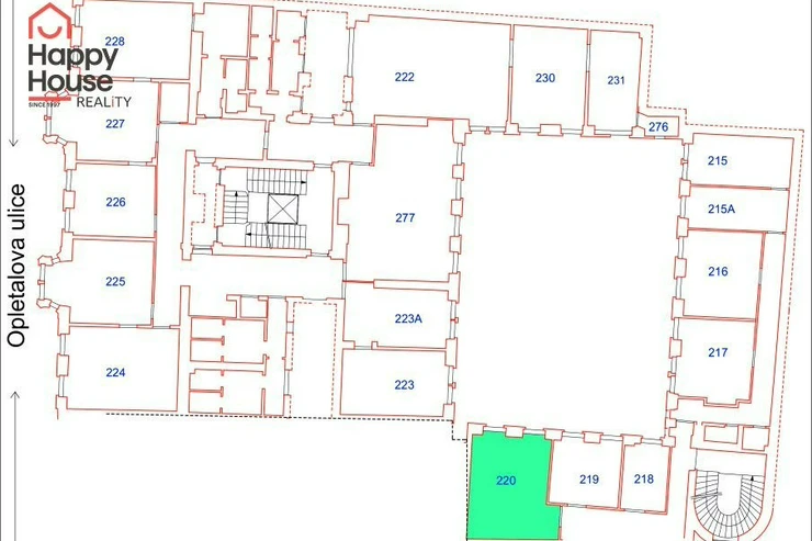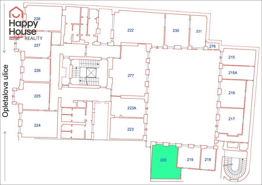 The building is located directly at Wenceslas Square, in a very popular and busy location with excellent amenities. Great transport accessibility, tram and metro stations A/C Museum about a 2-minute walk, tram and metro stations A/B Můstek about a 3-minute walk, and the main train station and metro C about a 4-minute walk from the building.