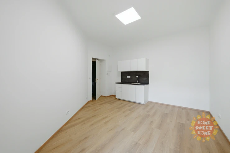 One room with a kitchenette, a toilet is in the hallway and belongs only to that space, a smaller storage room in the hallway. Electric direct heating.