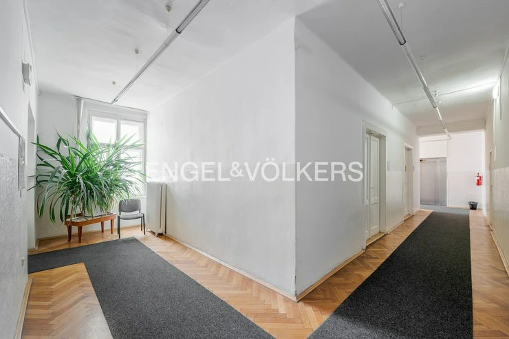 Office spaces are available for immediate rent, situated in the sought-after location of New Town in Senovážné Square. Excellent public transport connections are provided by the Jindřišská or Hlavní nádraží tram stops. The premises are located in a historical building featuring a reception, an elevator, and 24/7 access. The tenant has the option to place company signage at the entrance to the building.