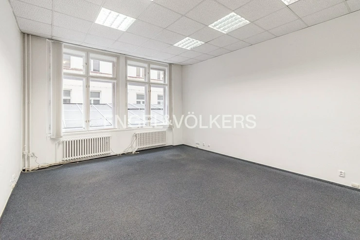 The office spaces are unfurnished, with plenty of daylight thanks to large windows. The equipment of the offices may vary – for example, some spaces feature air conditioning, a view of Wenceslas Square, private sanitary facilities, or stucco ceilings.