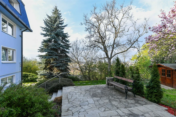 The Veleslavín house with land is fenced. Living and office spaces under one roof possible. 5 minutes on foot to public transport.