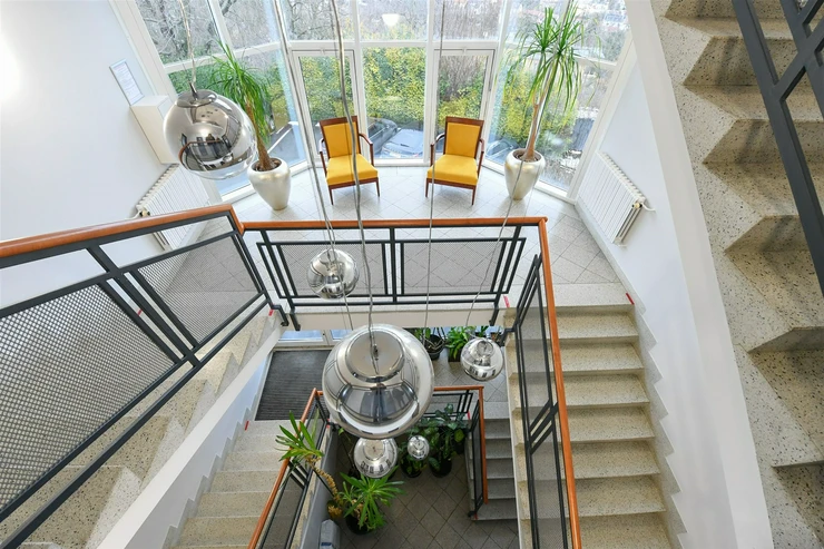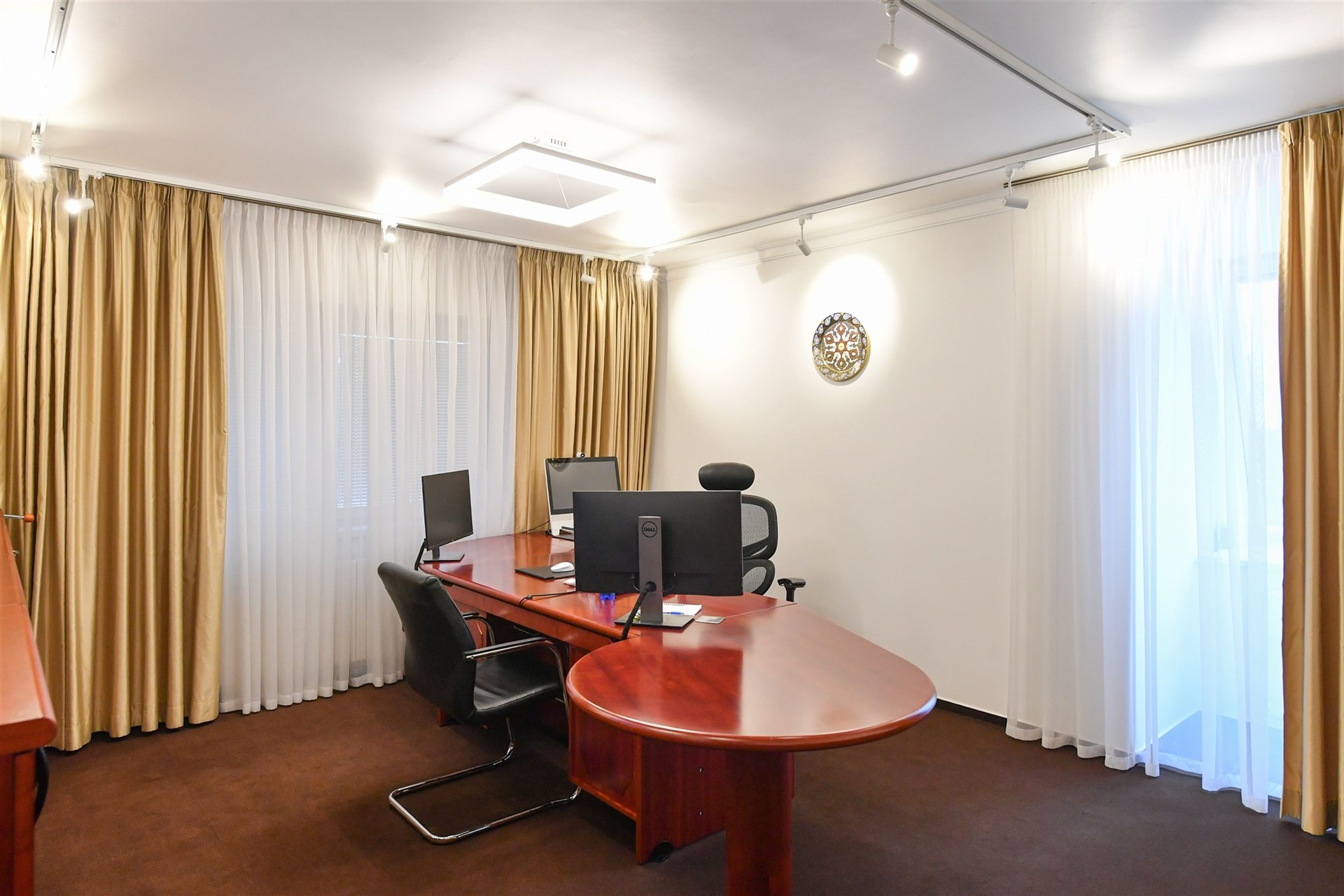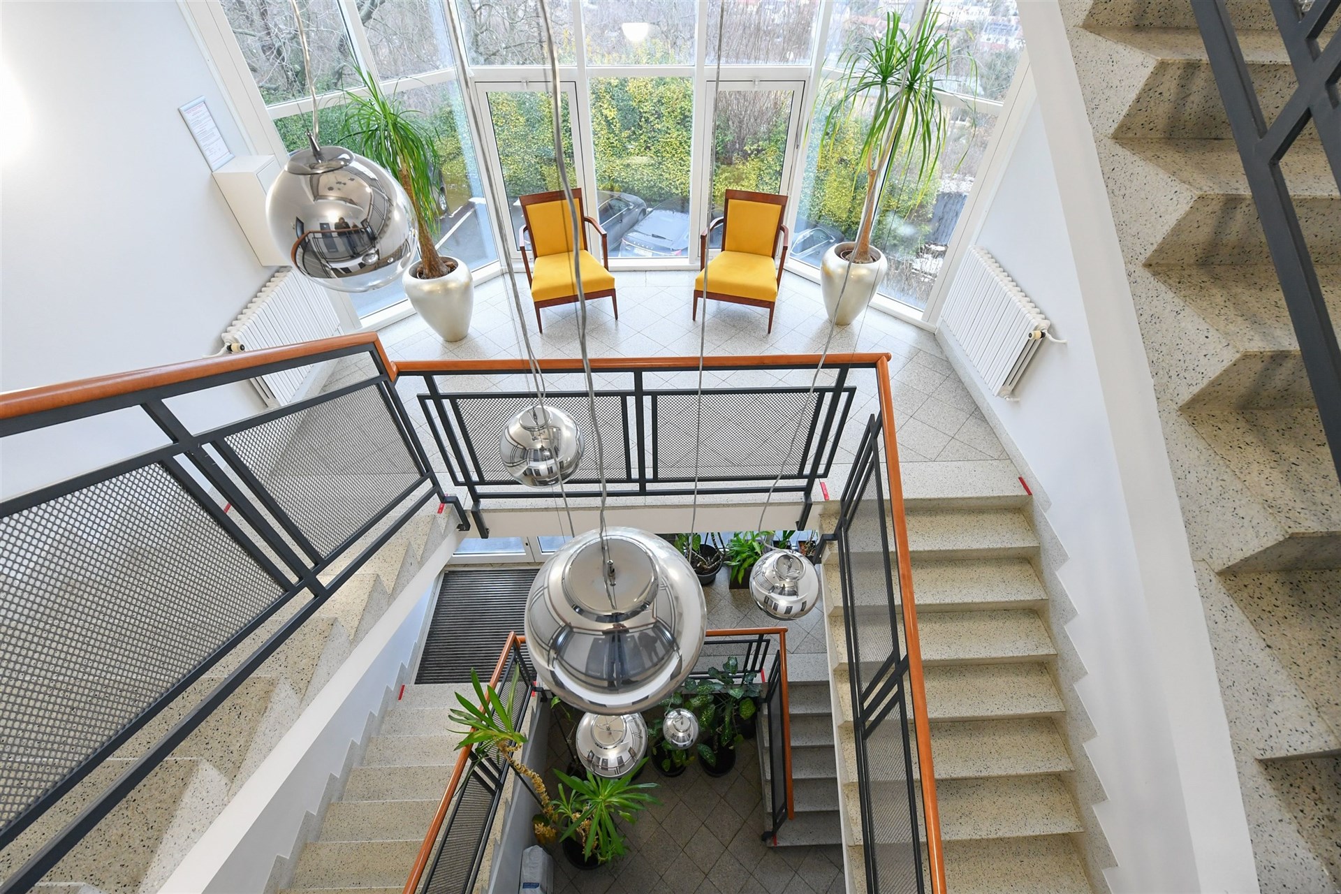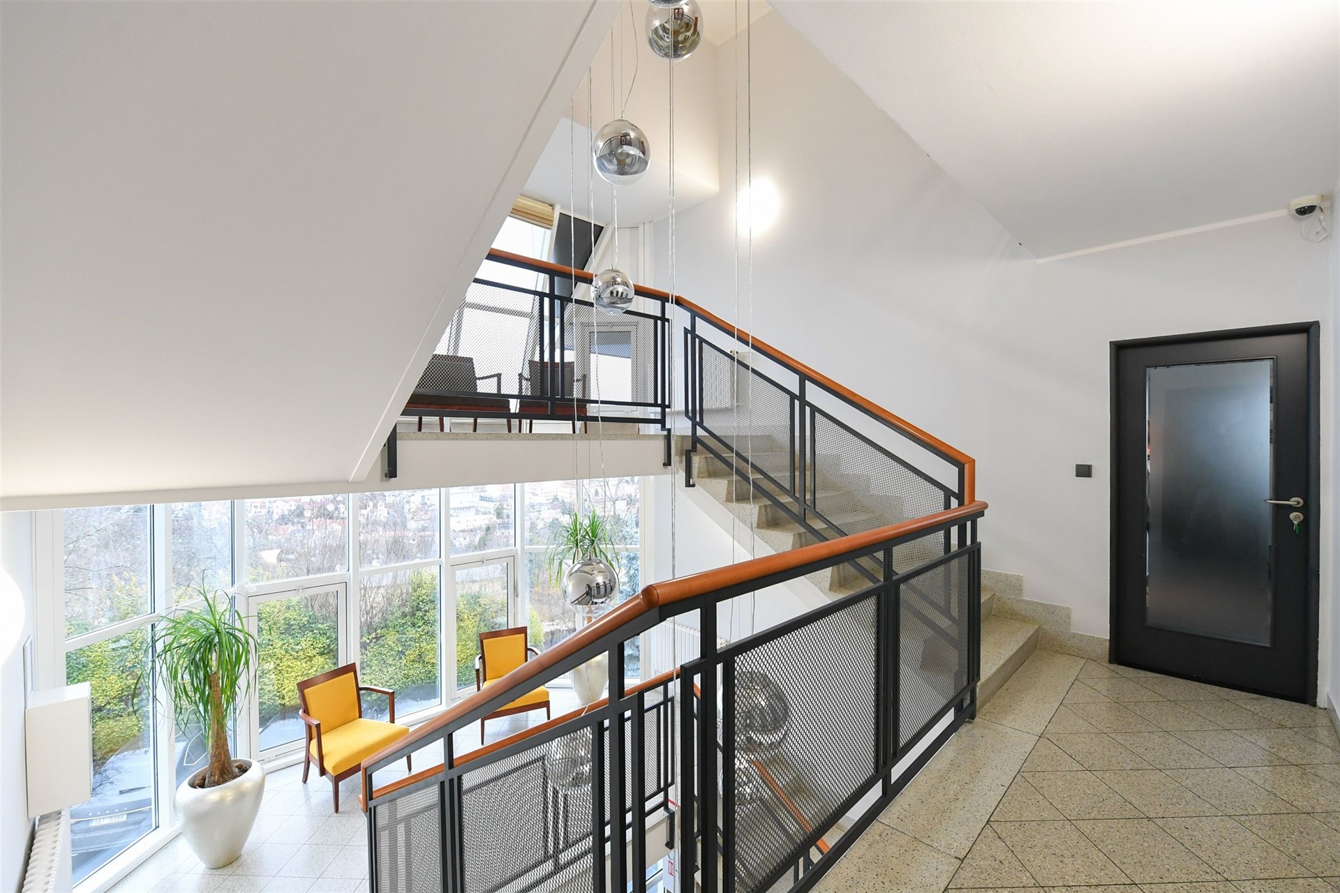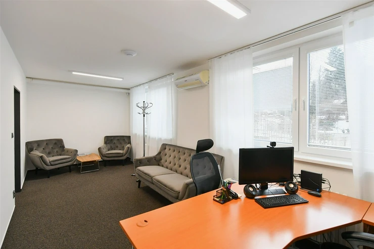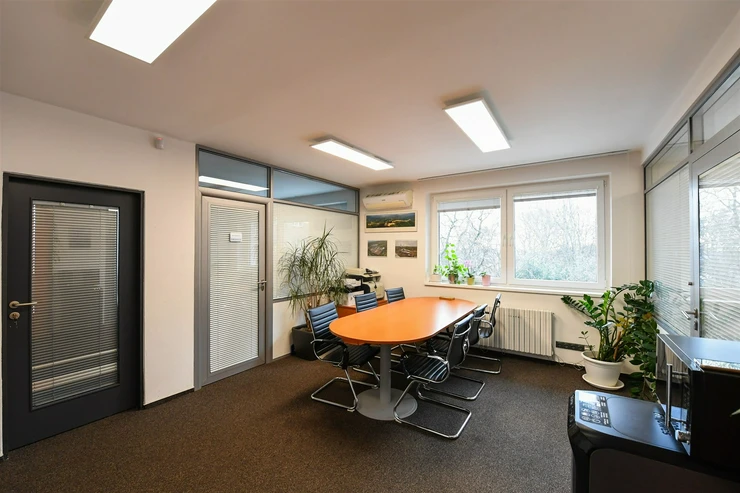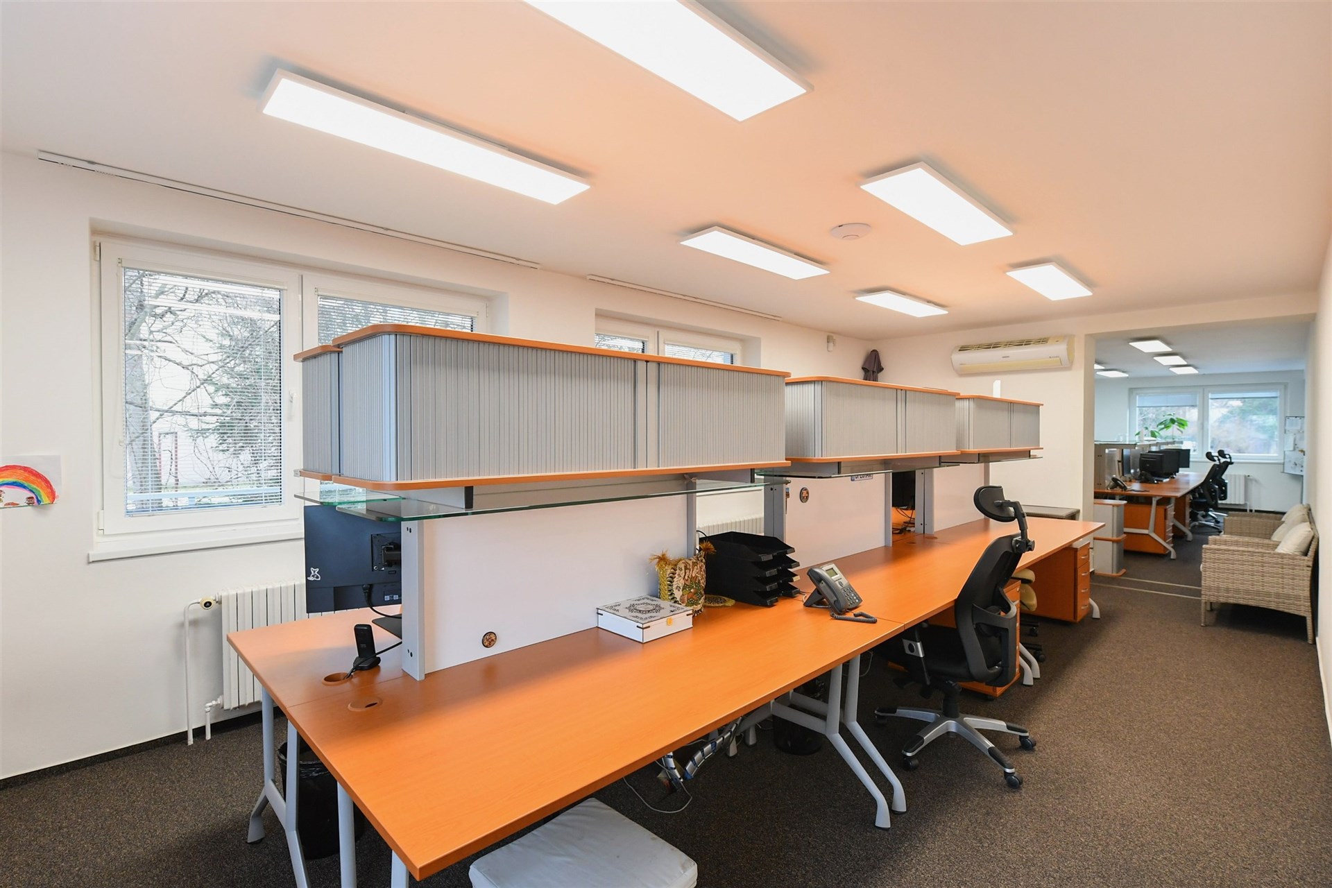 A four-story building, 24 offices allow flexible division of the building (up to 10 separate circuits), in perfect condition, with both southern and northern entrances, security cameras, chips, coding throughout the house, Jablotron, air conditioning throughout, O2 internet connection, reception, available for rent with or without furniture, ample bathrooms and kitchens, dining area, server room, storage etc.