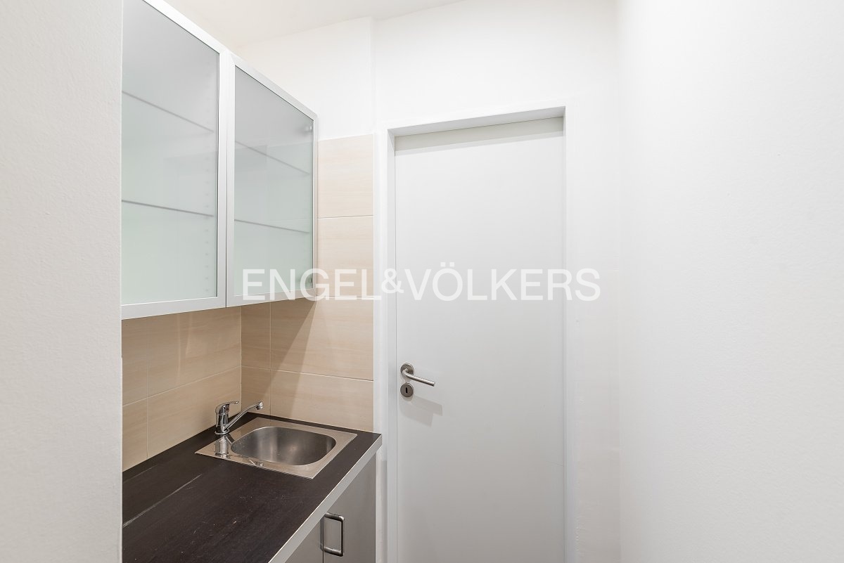 The space is partially equipped with office furniture. Of course, there are wooden floors, motion sensors, alarm and heating control.