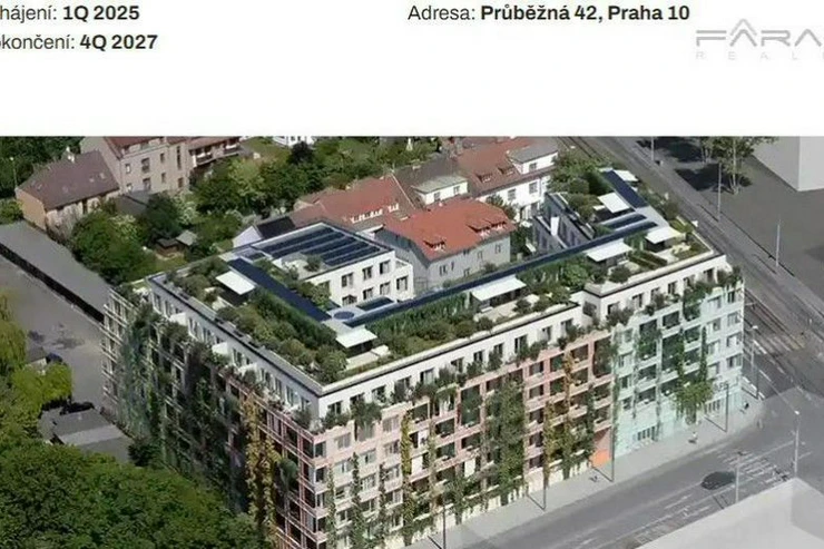 The project is being built in the residential area of Strašnice, near the Staré Strašnice tram stop at the intersection of Průběžná and V Korytech streets. After completion of the construction, a functional design building will be created with a facade of living climbing greenery and a green roof. The building will have garages in the basement and a large supermarket.