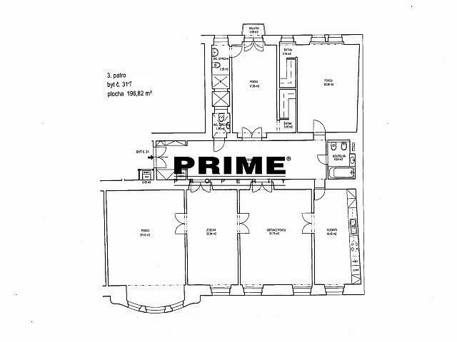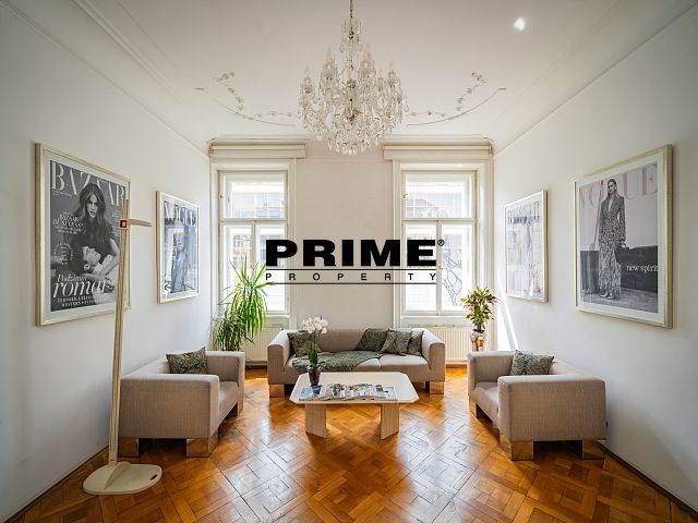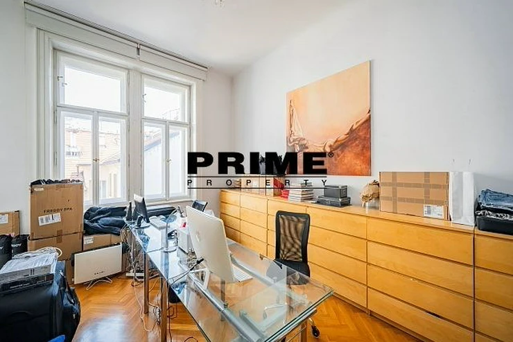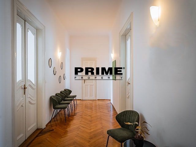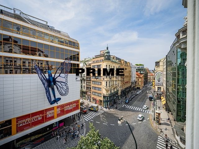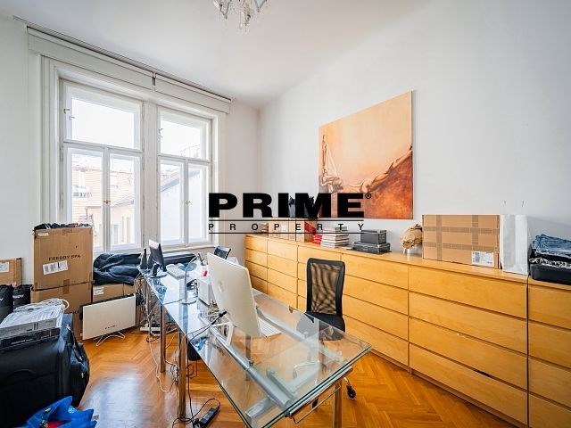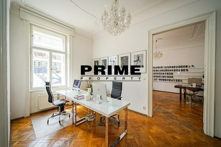 Elegant, bright and sunny, spacious, unfurnished office space for rent, 5 office rooms plus a kitchen and 2 bathrooms, 197m2, with a small balcony, situated on the 3rd floor of a completely renovated Art Nouveau building with a lift. Located just a few minutes´ walk to a tram stop and Národní třída and Můstek metro stations, close to Quadrio shopping mall, shops, cafés, restaurants and Wenceslas Square and a short walk to the National Theatre and Old Town Square.