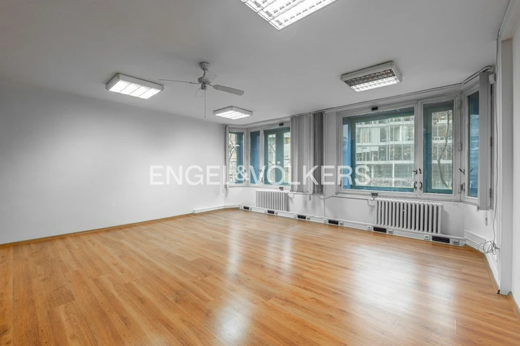 An office is available for immediate rent in Prague New Town in an office building on Ječná Street. The building is entered through the reception, from where you can easily take the elevator to the desired floor. The office consists of a spacious bright room, equipped with a floating floor, plastic windows with vertical blinds and built-in cabinets.