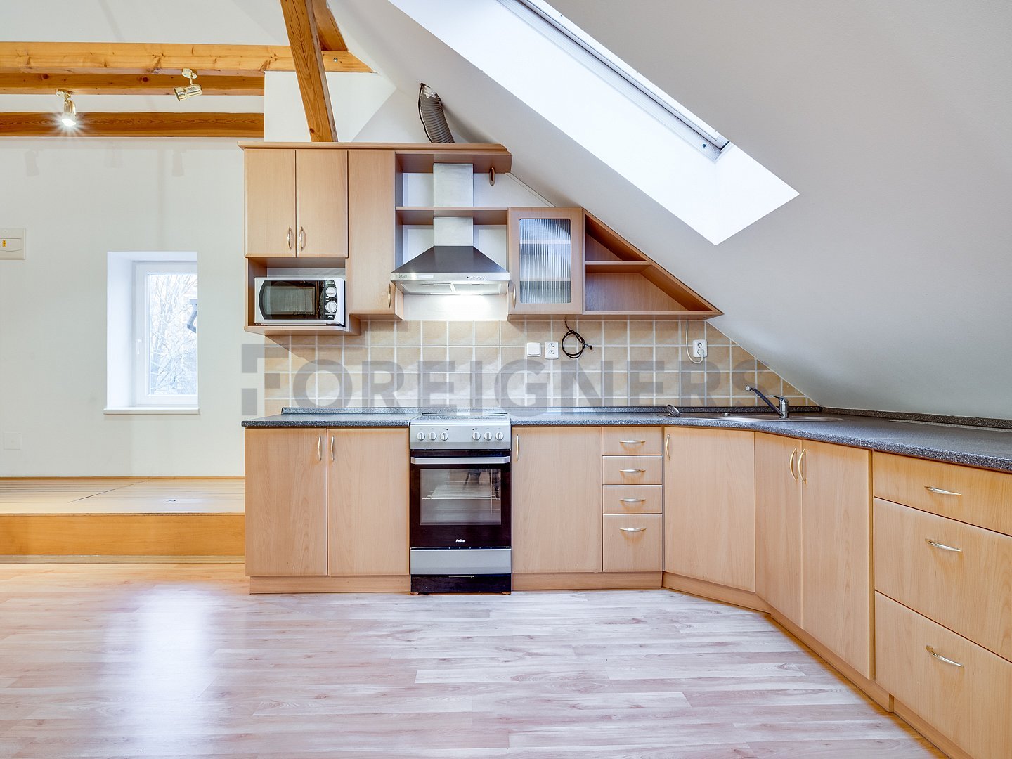 The house is situated in an attractive location - Bílé Předměstí. It is just a few minutes walk from the bus stop, grocery stores, cafe, restaurant and gym. The apartment has a garden of 700 m2 and a garage place.