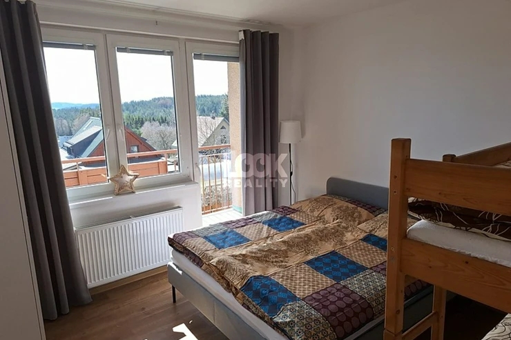 A Beautiful apartment in the location full of greenery and turistic trails. Apartment Sluncko is a newly renovated apartment with completely new furniture. The apartment has an area of 62 m2 with a balcony with a beautiful panoramic view of nature. The apartment consists of 2 bedrooms and a living room. The first bedroom can accommodate up to 4 people. Second 3 persons, according to the agreement 3 and a small child. There is a new wardrobe in each bedroom and there is also a cloakroom and utility room in the hall in the chamber. The apartment is equipped with a dishwasher, washing machine, dryer, microwave oven, oven, hob. The kitchen is fully equipped. The biggest advantage of this apartment is that it is located within a few minutes of all interesting mountain places, slopes or cross-country trails, at a reasonable price.
