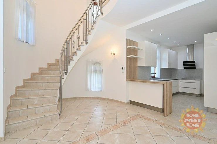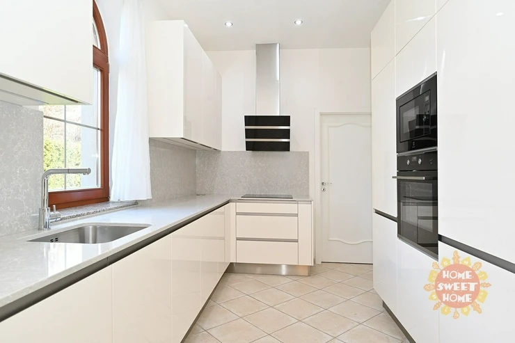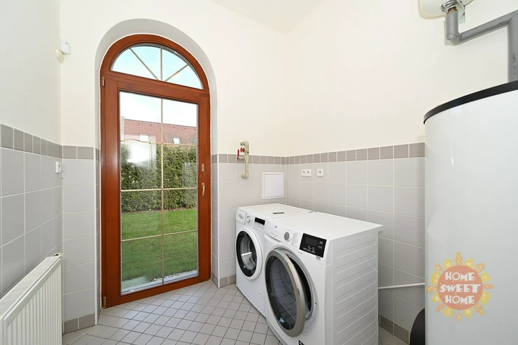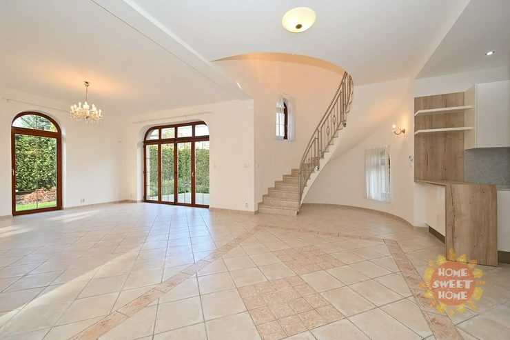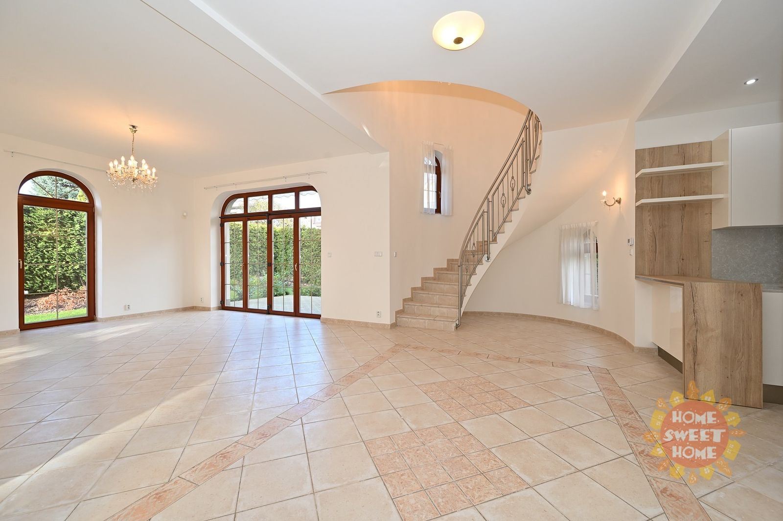 The house is suitable for the most demanding clients. It is located in a quiet location in a residential area. The complex of villas is adjacent to The International School of Prague, near the elementary and kindergarten, health center, shops, sports hall and tennis center, golf club. Nature lovers will enjoy the nearby nature reserve Divoká Šárka or the trail along the Vltava river. Nearby is also a residential district of Dejvice with other amenities and a metro station and tram "Dejvická". Good connections to the airport and the city center.