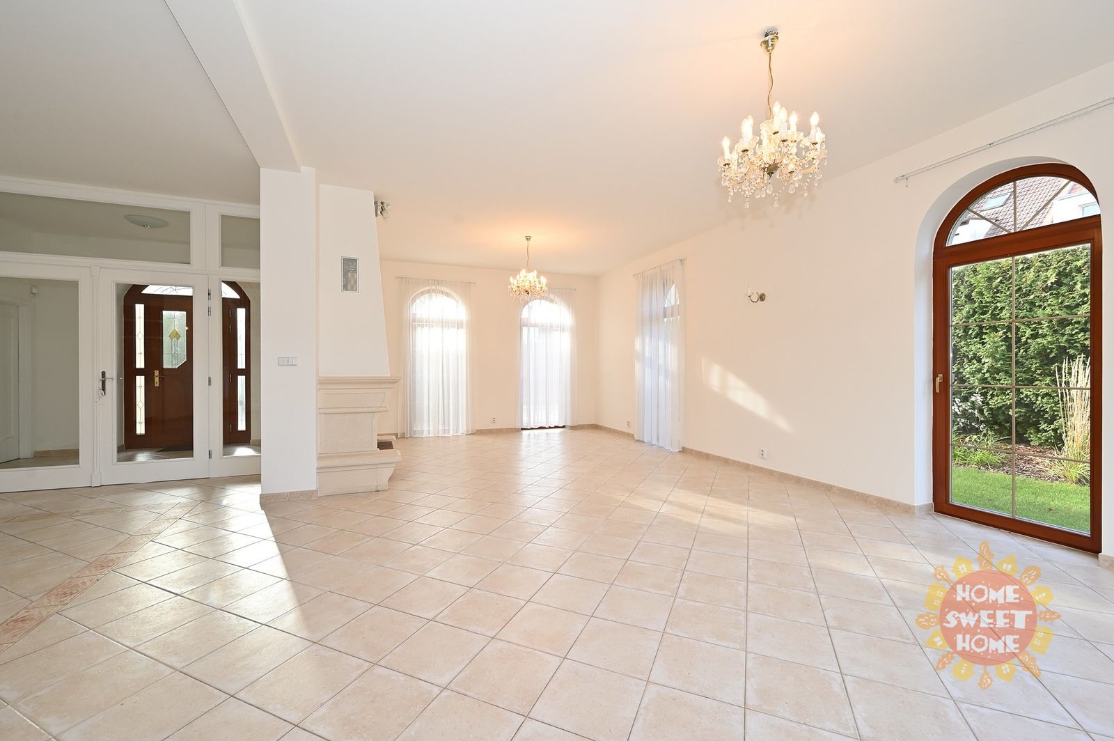Luxury family villa 5+1 for rent in very popular location Prague 6 - Nebusice. The total area of the house is 243 sqm and the big advantage is a nice and well-kept garden with a heated swimming pool. The house is part of a residential complex.