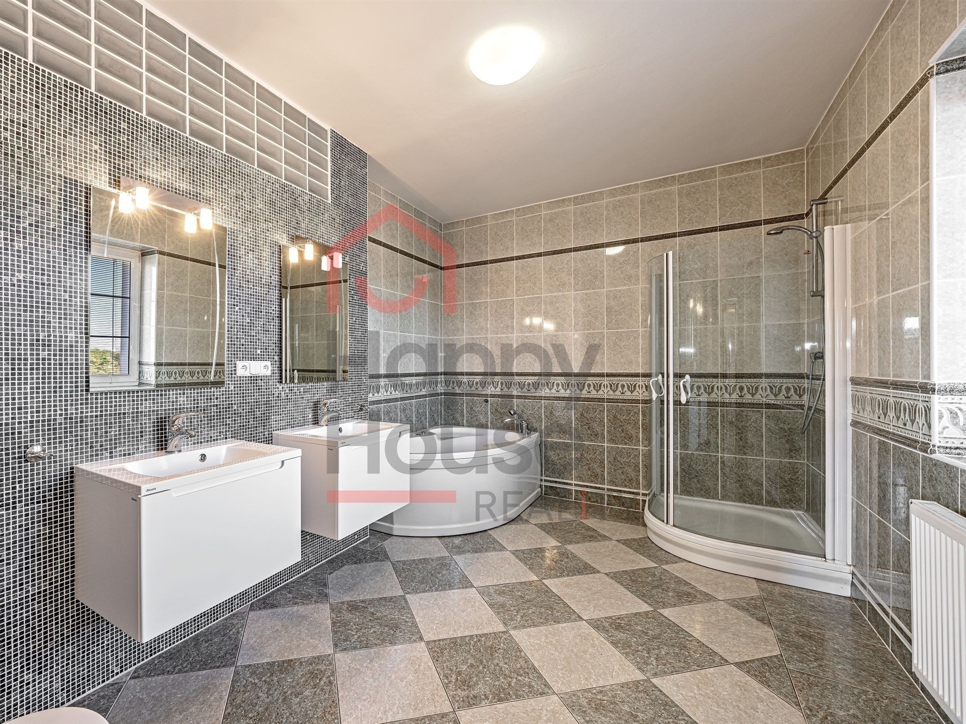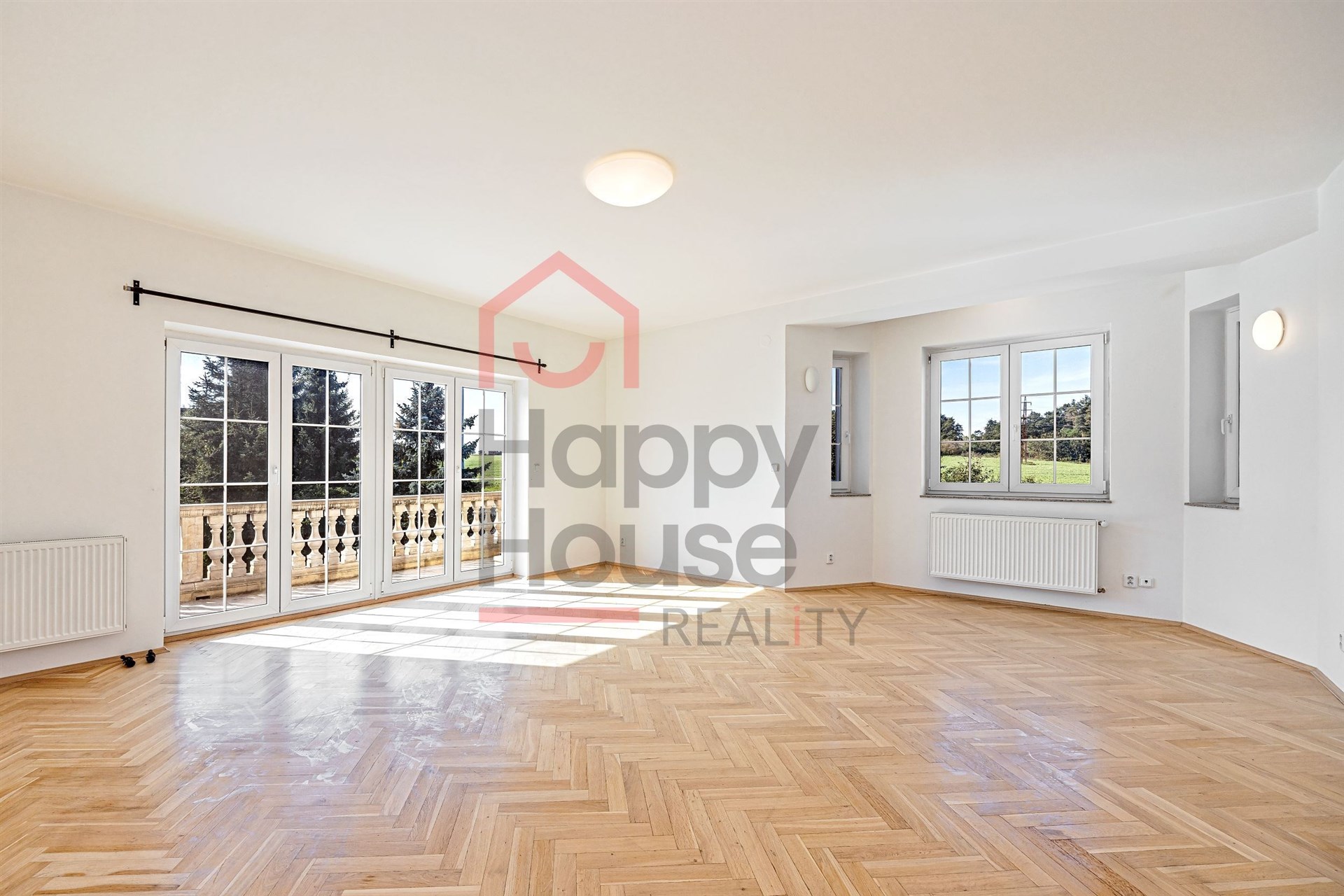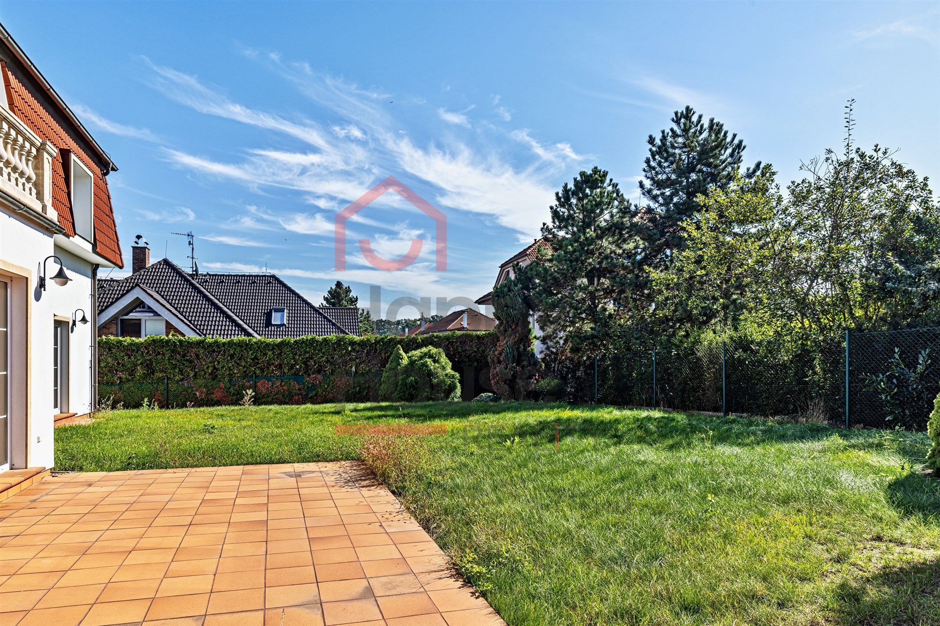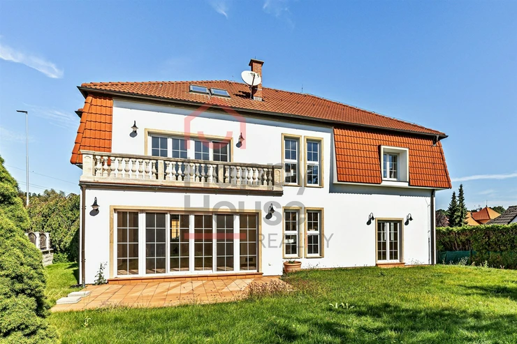 We offer for rent a luxurious family villa 7+1 with a spacious garden and a double garage in the popular residential area of Průhonice, just 15 km from the center of Prague.
