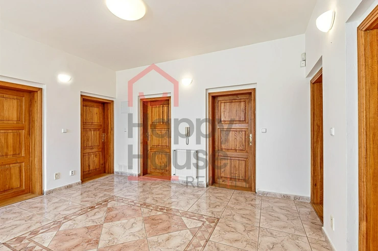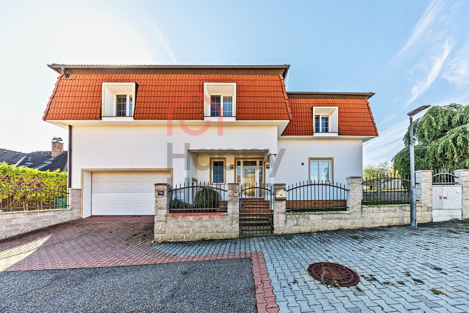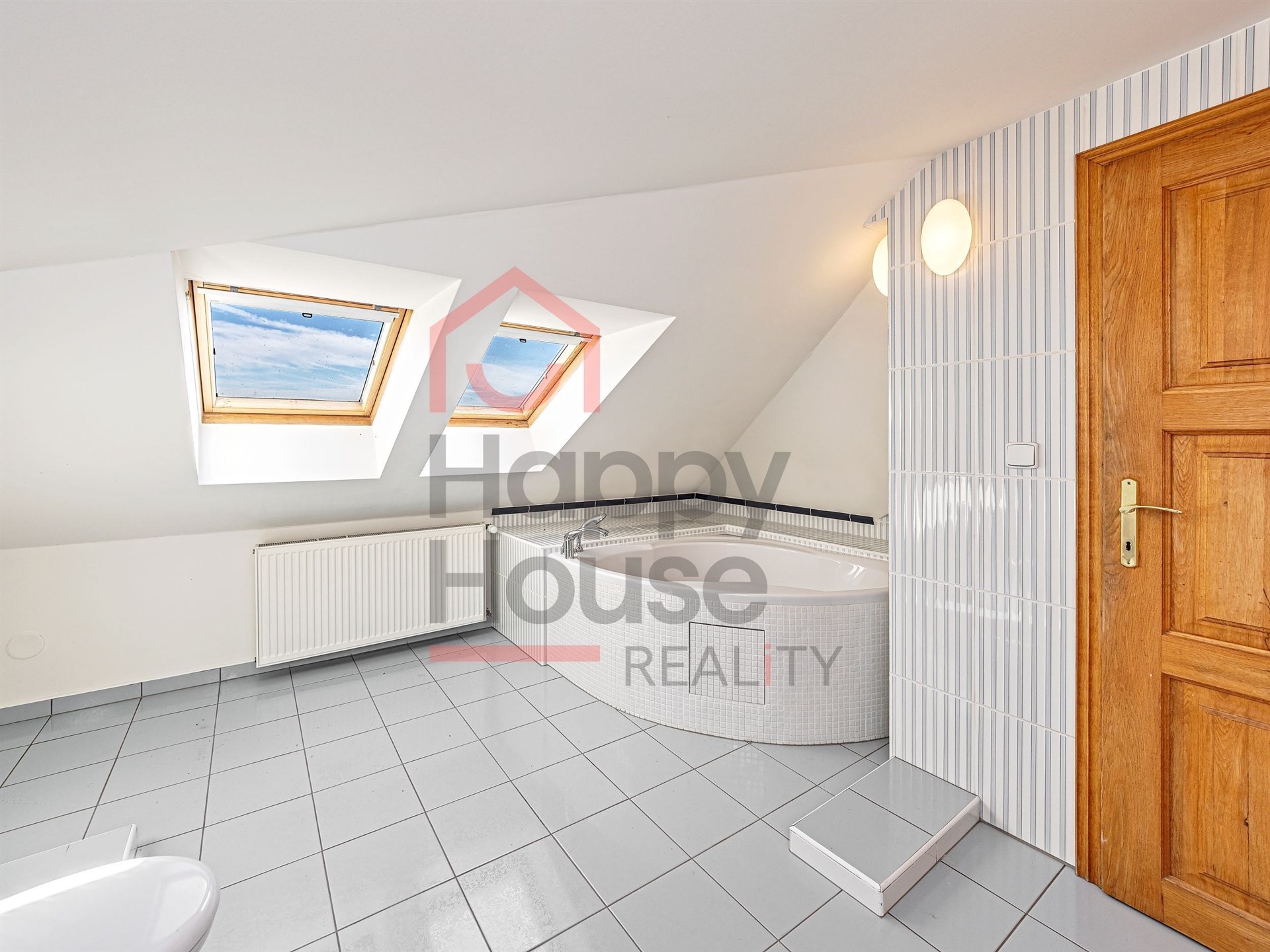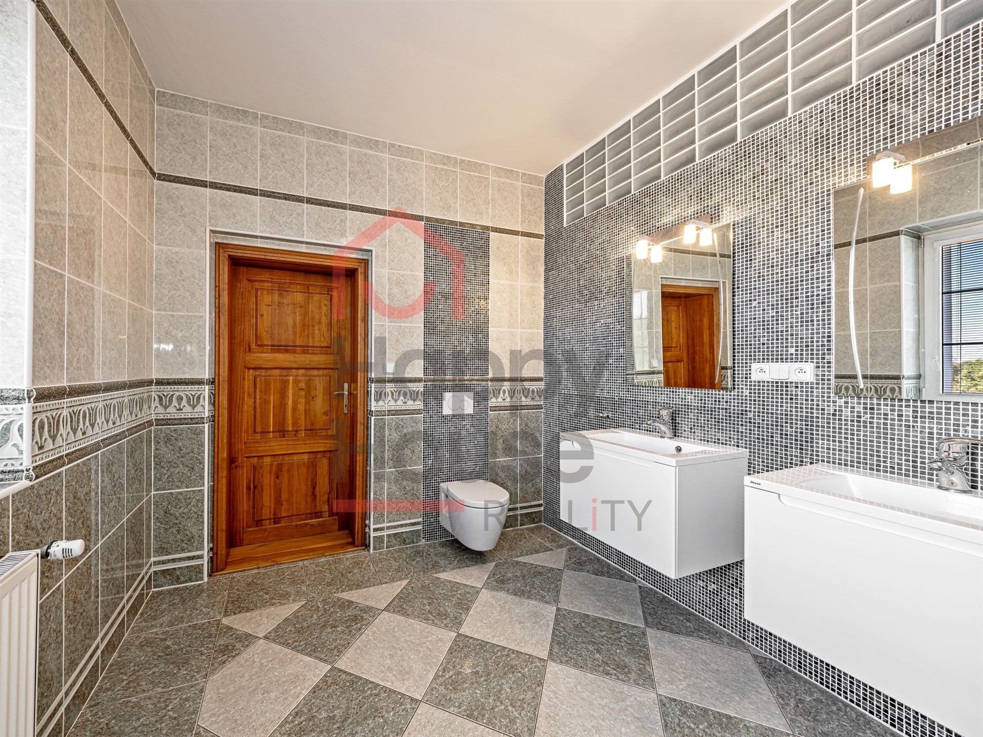 We offer for rent a luxurious family villa 7+1 with a spacious garden and a double garage in the popular residential area of Průhonice, just 15 km from the center of Prague.