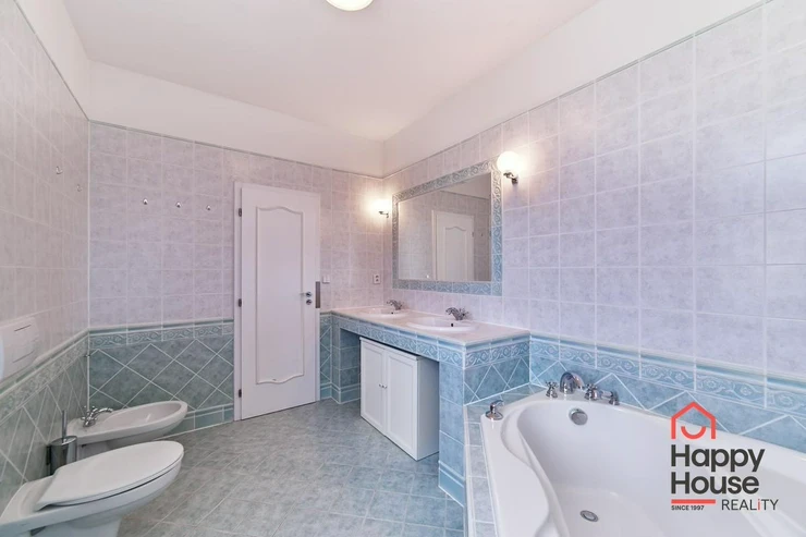 I am offering to rent an air-conditioned, 5+1 villa of 270 m² located in the prestigious Nebušice area, inside the enclosed Villas Šárka complex. The house is surrounded by a beautiful garden with automatic irrigation and an outdoor heated pool. There are two garage spaces available.