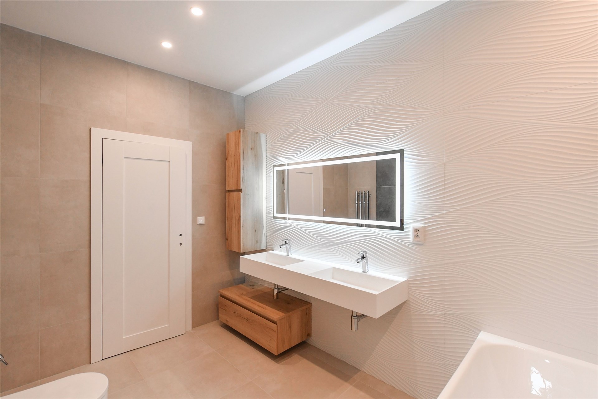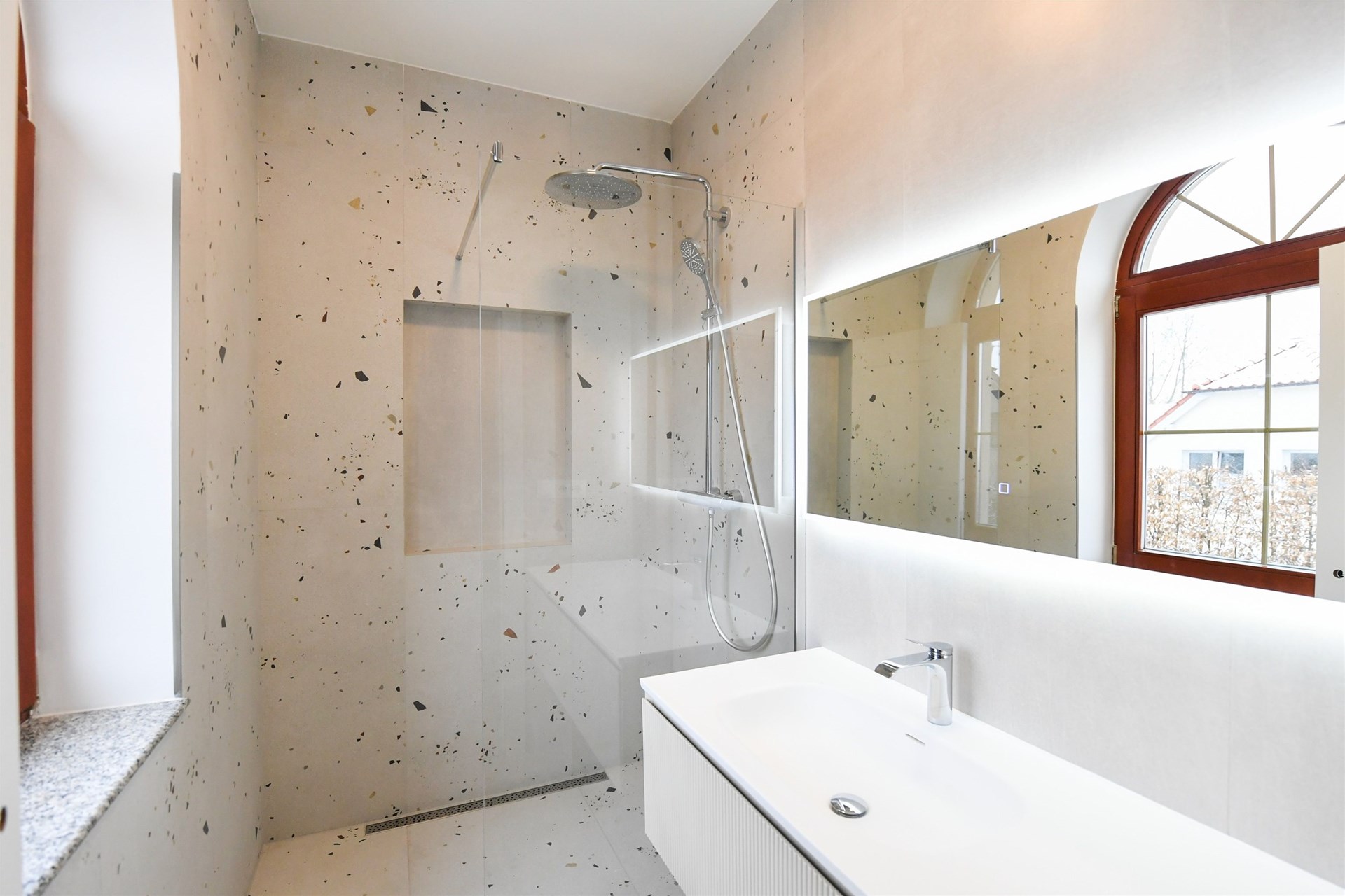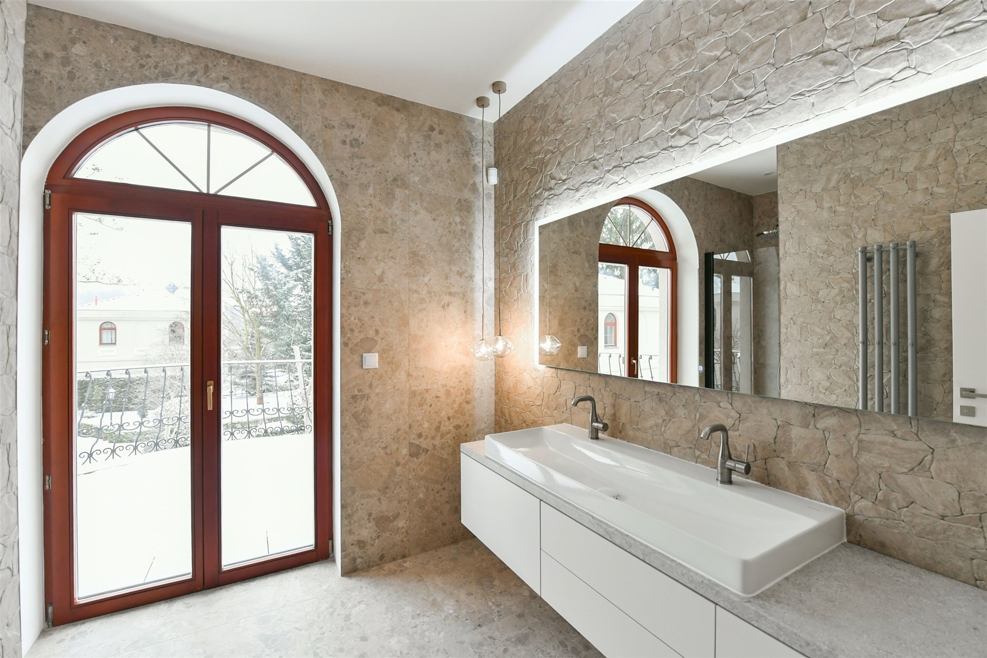 A detached villa in a luxurious gated community in Prague 6 Nebušice has a living area of 243 m², a double garage, and a 12 m² terrace. It also boasts its own private garden with a heated swimming pool (5 x 3.1 x 1.5m with counterflow and lighting). The villa is available immediately.