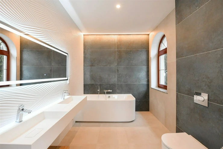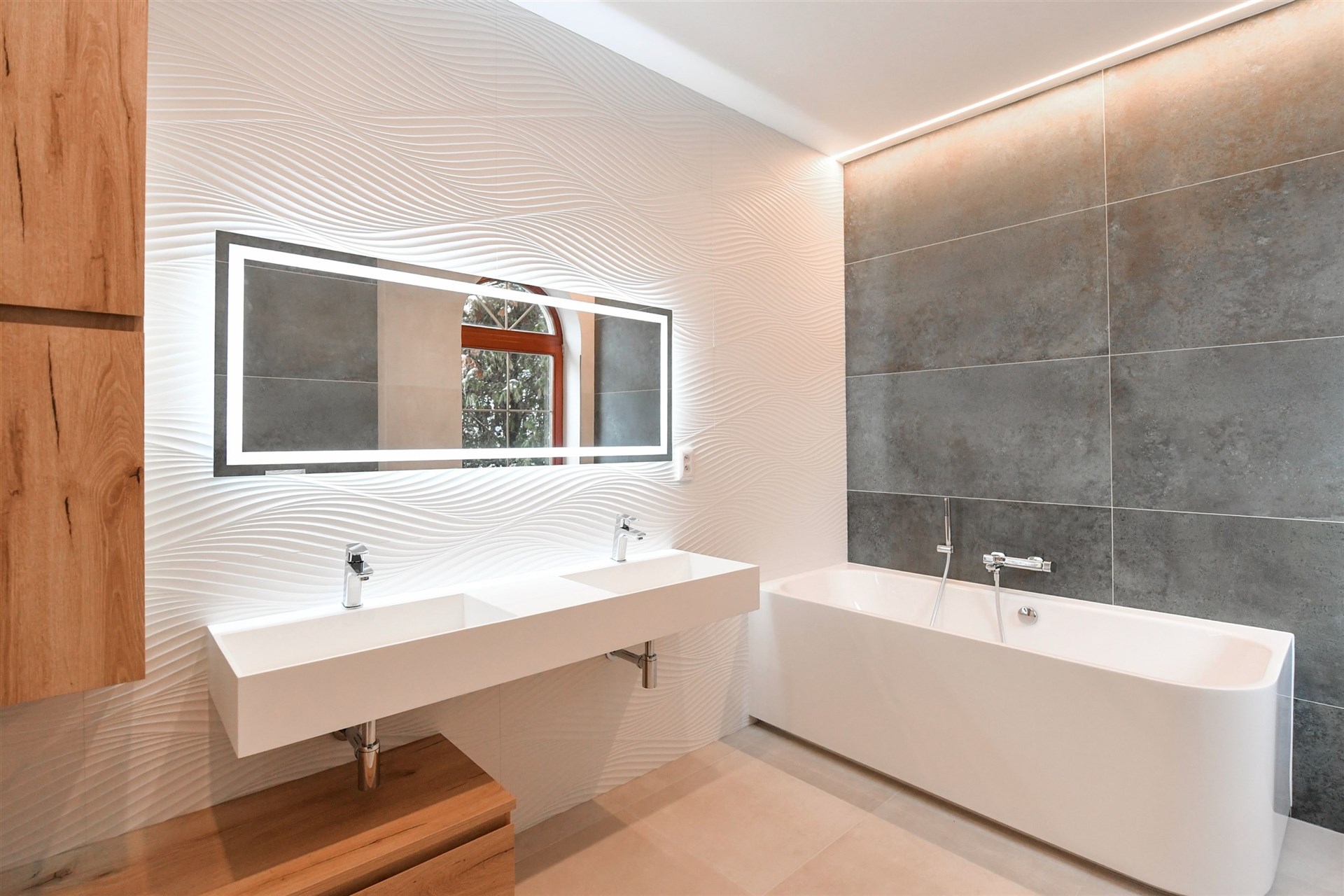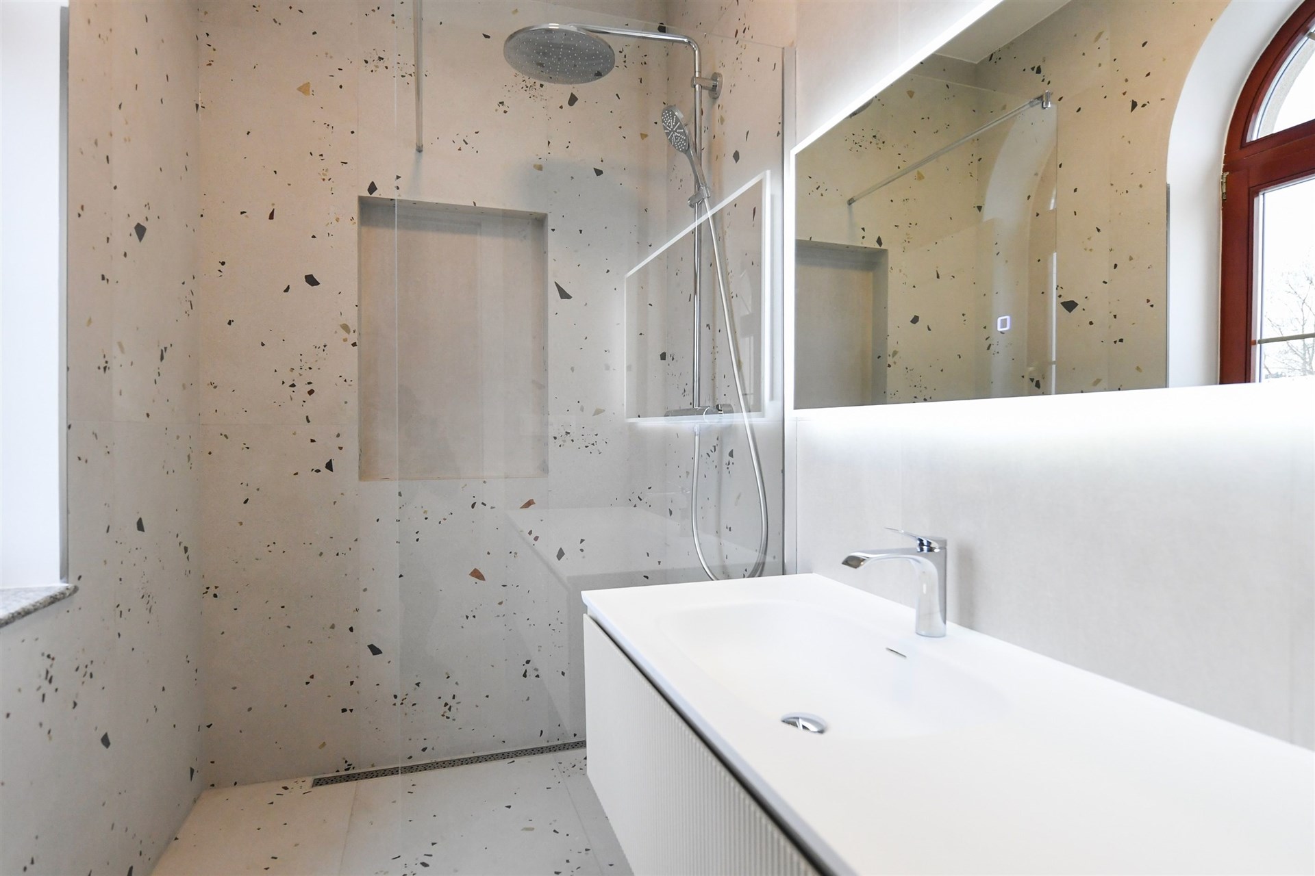 A detached villa in a luxurious gated community in Prague 6 Nebušice has a living area of 243 m², a double garage, and a 12 m² terrace. It also boasts its own private garden with a heated swimming pool (5 x 3.1 x 1.5m with counterflow and lighting). The villa is available immediately.