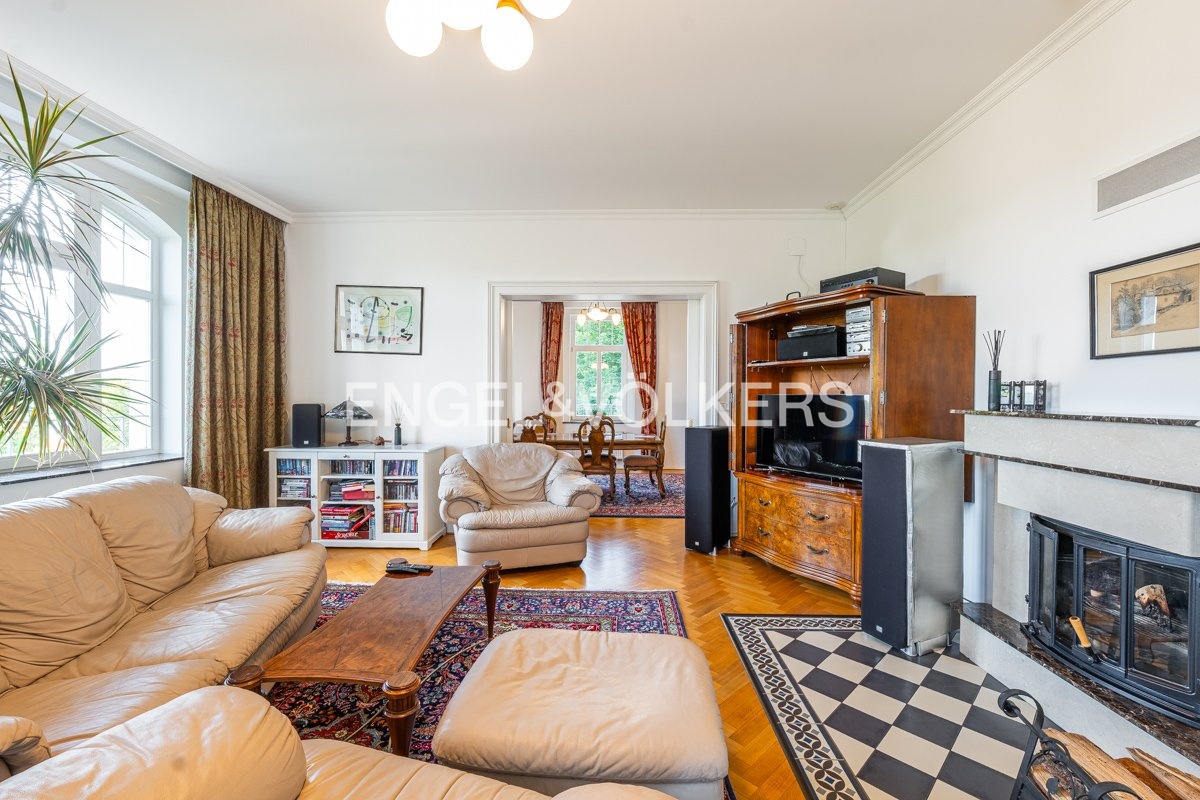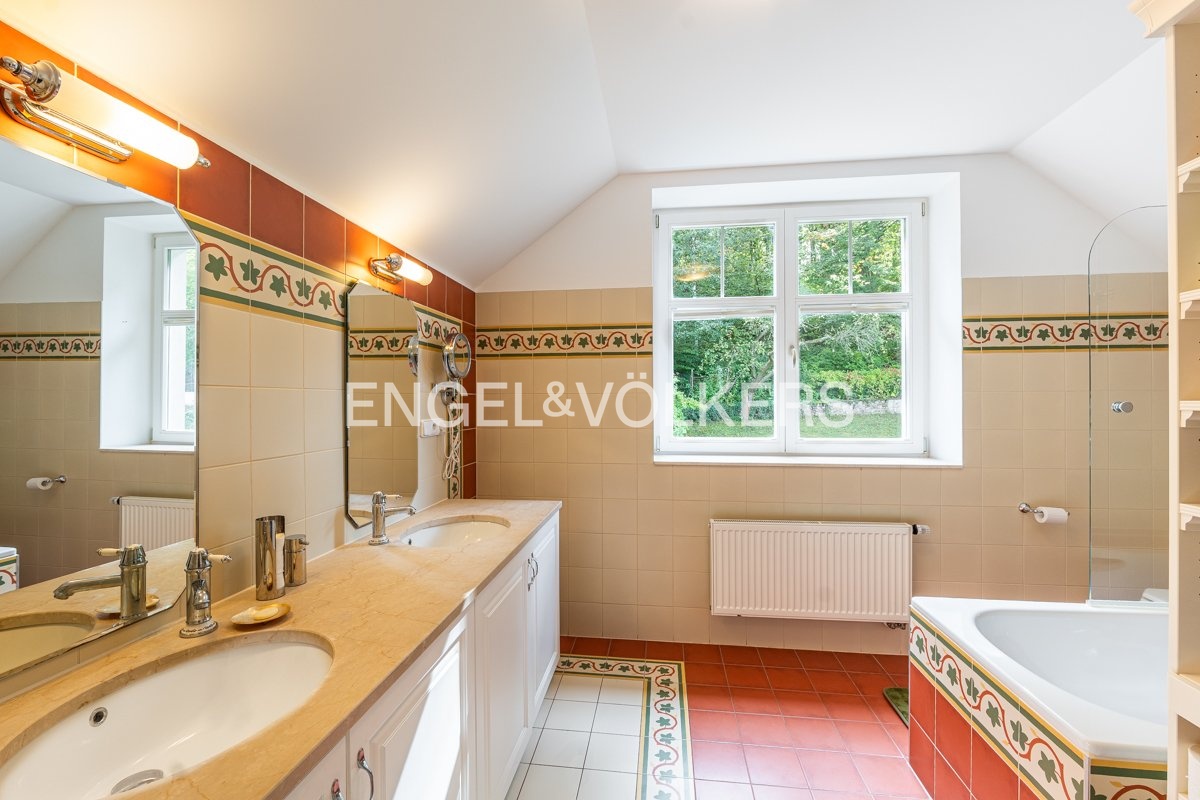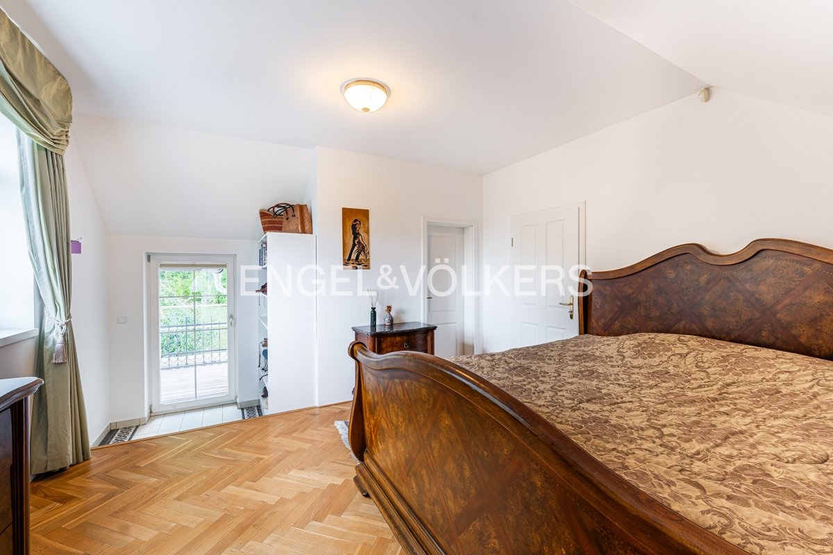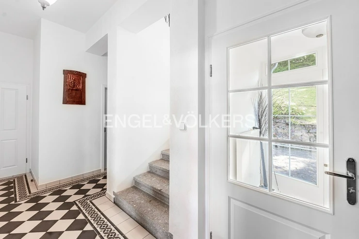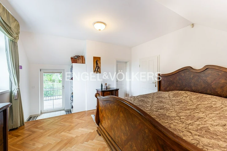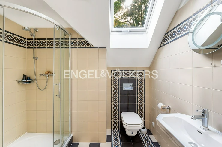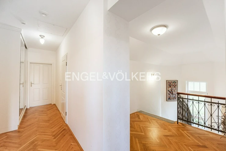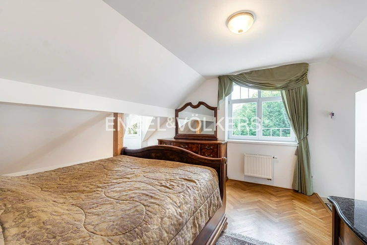 On the first living floor, there is a winter garden leading to a large terrace, a spacious living room with a fireplace, dining room and a fully equipped kitchen with Electrolux appliances. All these spaces are interconnected and are ideal for representational purposes. Furthermore, on this floor there is a separate toilet, pantry and laundry room with washing machine and dryer.