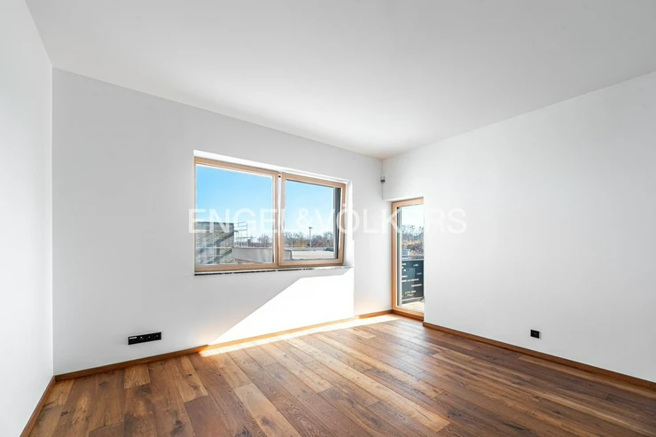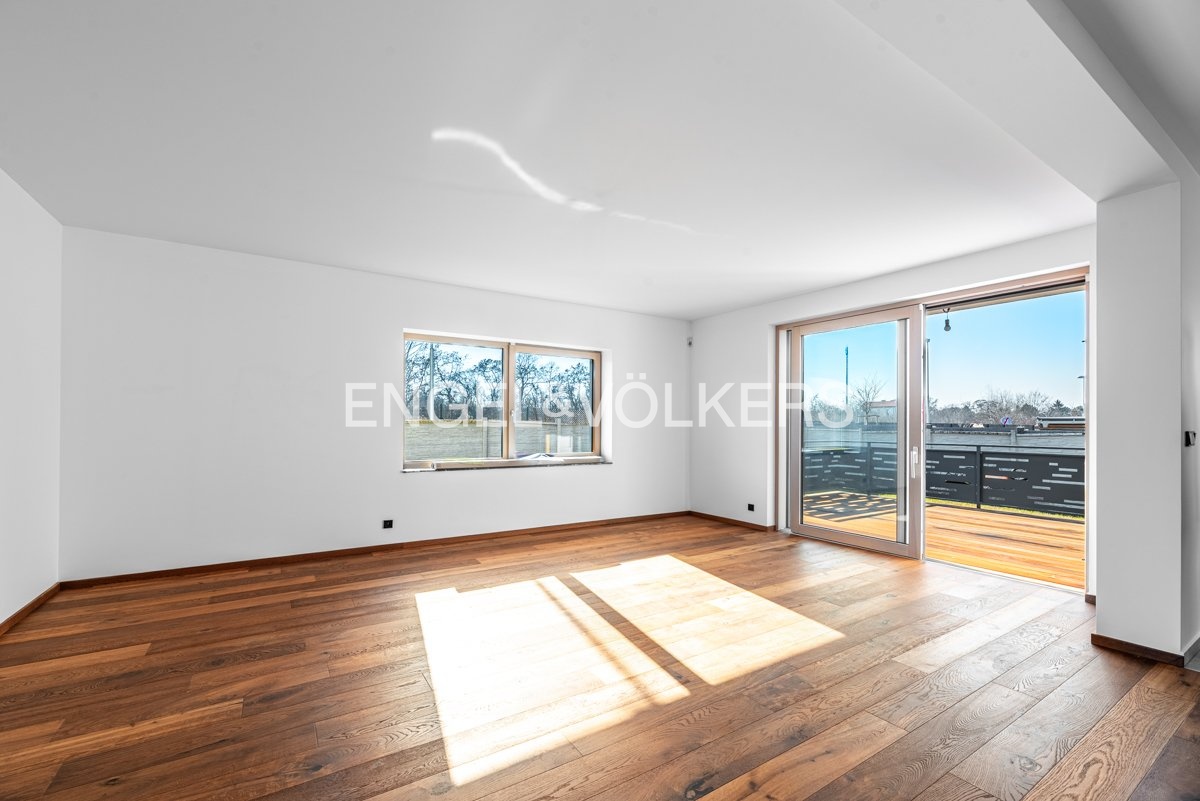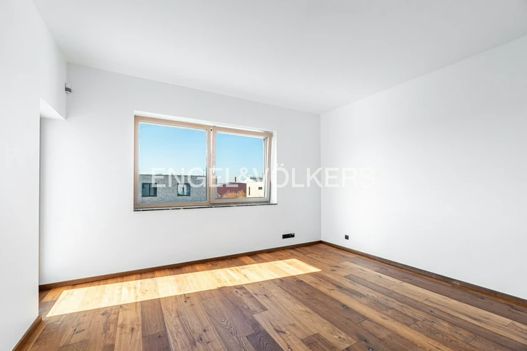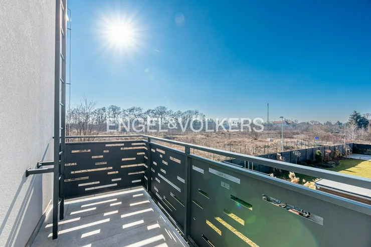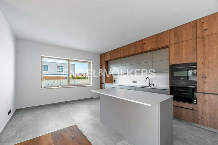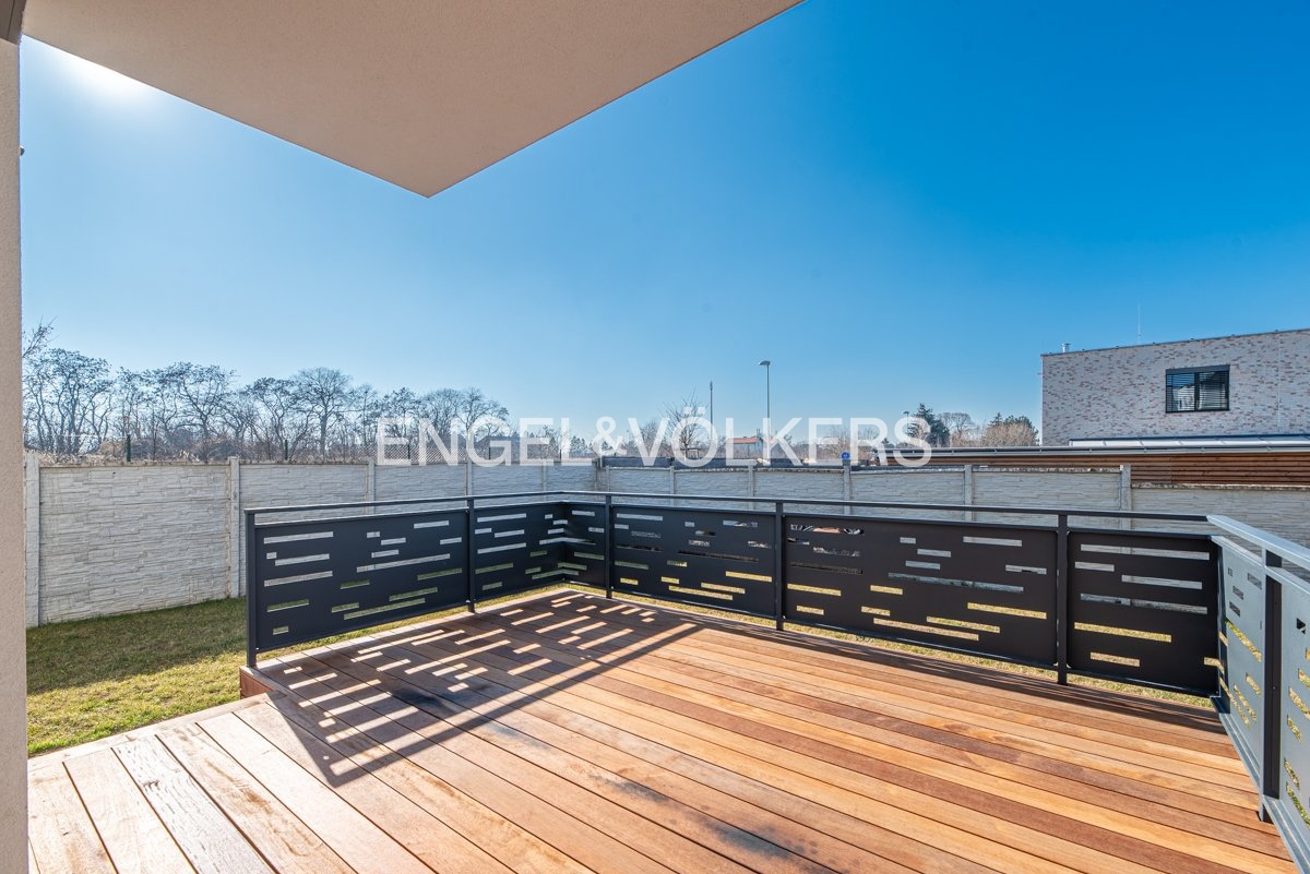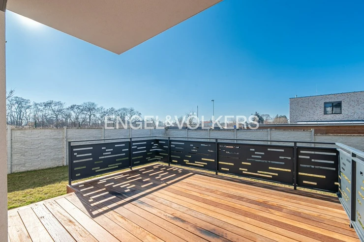 Low-energy new building with air conditioning, three bathrooms, garden and terrace in a residential development in Satalice.