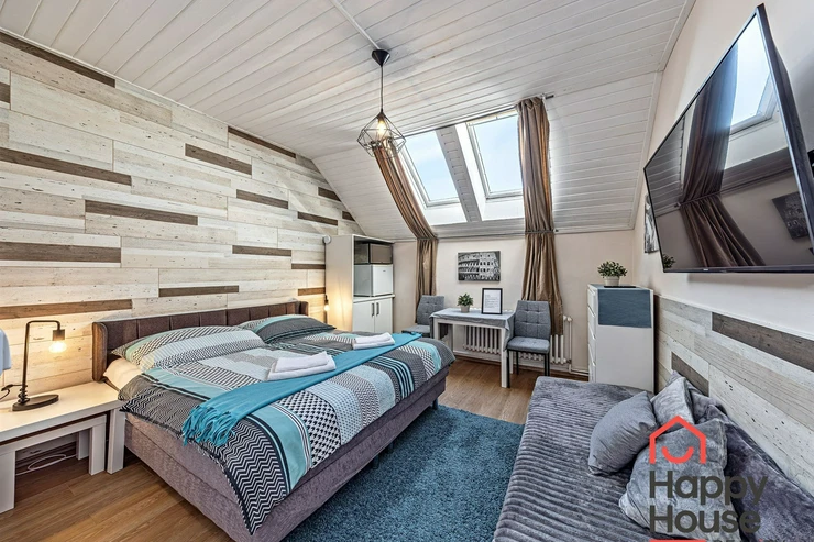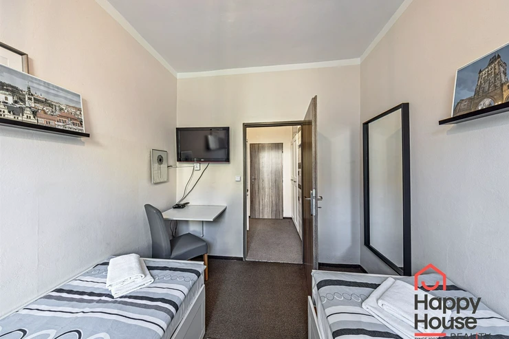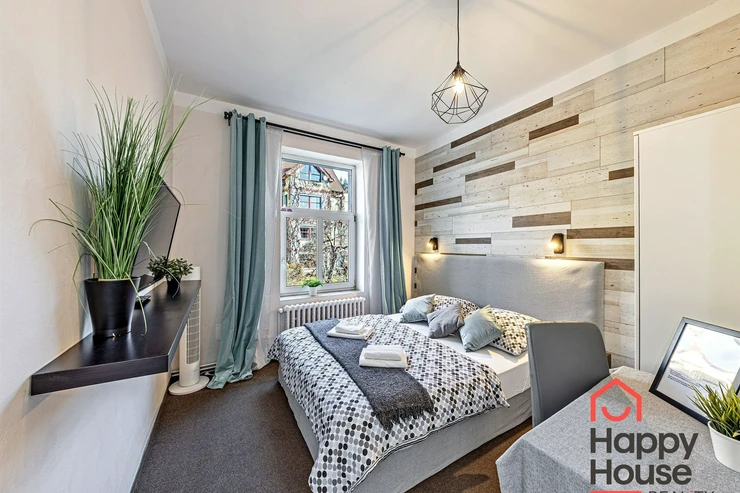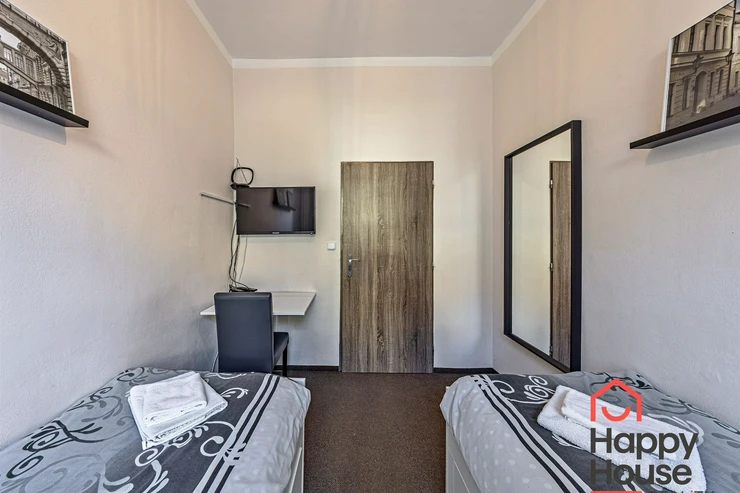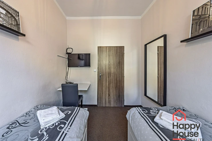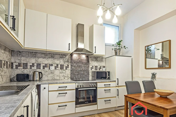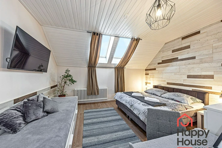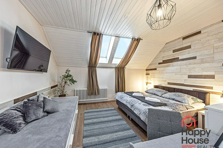 We are offering for rent (suitable for Airbnb or a guest house) a very well-furnished terraced family house with 10 rooms, which has 3 floors containing six studio apartments and three 2-room apartments, and one semi-basement with a 3-room apartment. The house is insulated, energy-efficient, with a newly renovated facade, and is estimated to have a B-class energy label.