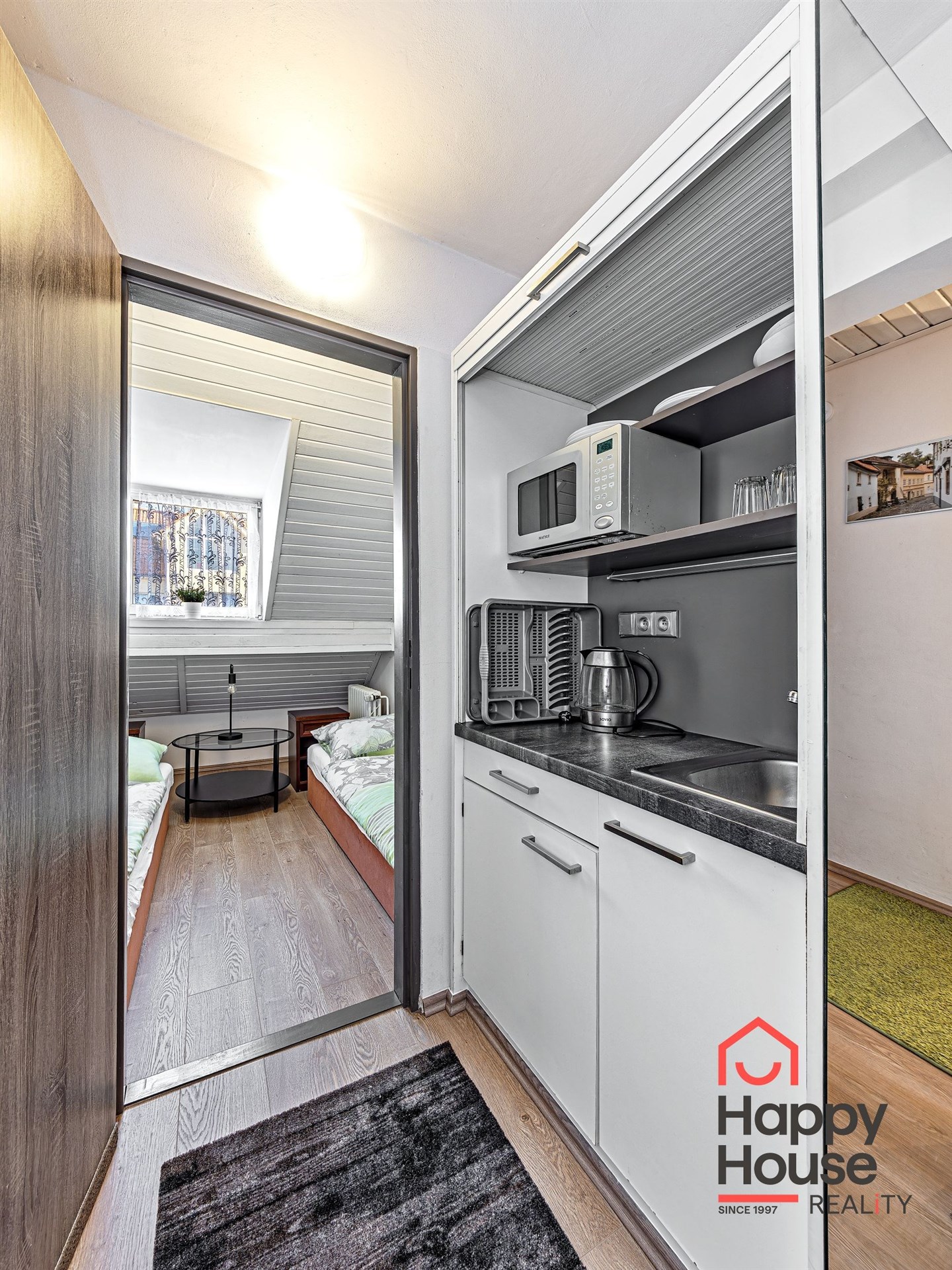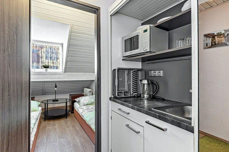 All apartments are equipped with a kitchenette featuring a microwave, refrigerator, and electric kettle.