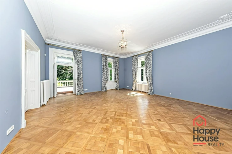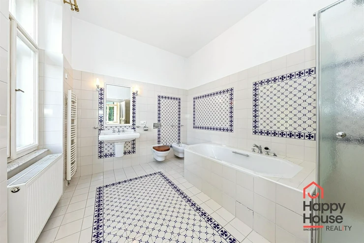 We offer for rent an extensive 8+2 villa in Prague 6. This is a unique, completely renovated property from 1902 located in the area of Vokovický Dvůr, whose history dates back to the 15th century and is today a cultural heritage site within a protected area. The villa, with one underground and three above-ground floors, features an indoor pool, sauna, beautiful mature garden in the style of an English park covering an area of 8,510 m2 with a fountain, garden gazebo, tennis court, and a terrace. The orientation of the living rooms is south, west, and north. The villa is situated on a quiet street close to the Šárka nature reserve, in one of the most beautiful parts of the capital city, on the edge of Dejvice in Vokovice at Prague 6.