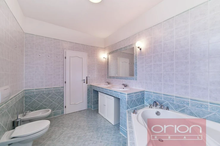 We offer for rent a representative four bedroom family villa with a total area of 243 sqm in Prague 6 - Nebušice. The villa is part of a closed complex of 7 houses in close proximity to the international school in Nebušice. The main floor of the house offers an entrance hall with a dressing room, a living room with a fireplace and access to the terrace, a fully equipped kitchen, a separate toilet, a pantry, a laundry room and a garage for 2 cars. There are 4 bedrooms on the first floor (2 of the bedrooms have their own bathroom with bath, bidet and toilet), a separate bathroom with shower and bidet. Air conditioning, underfloor heating, internet, satellite. A garden of 328 sqm with an outdoor heated pool. Easy access to the city center as well as to the airport.