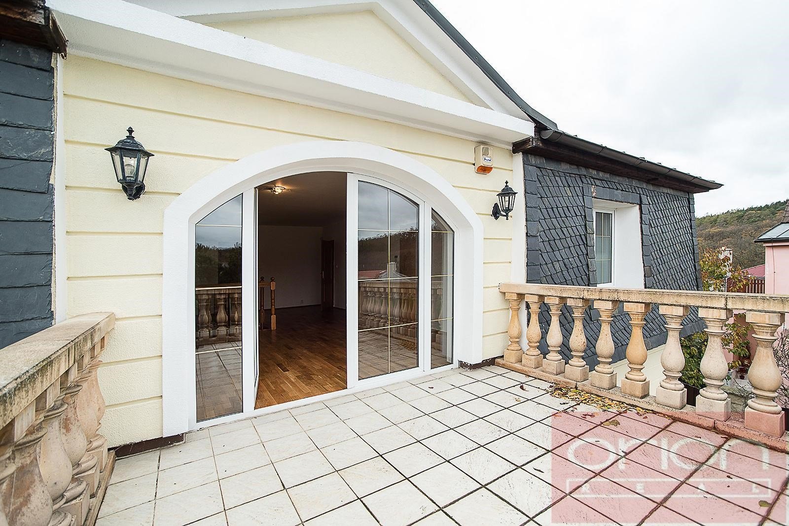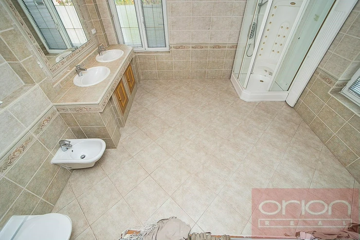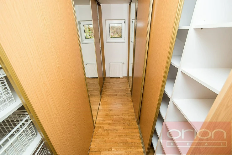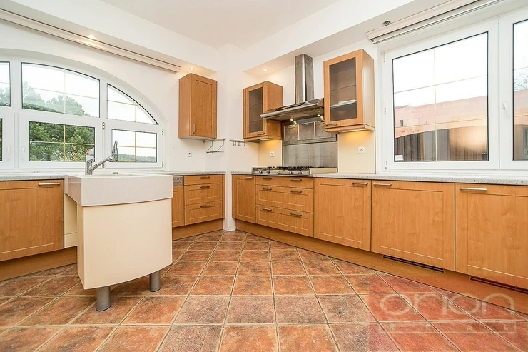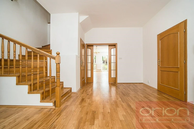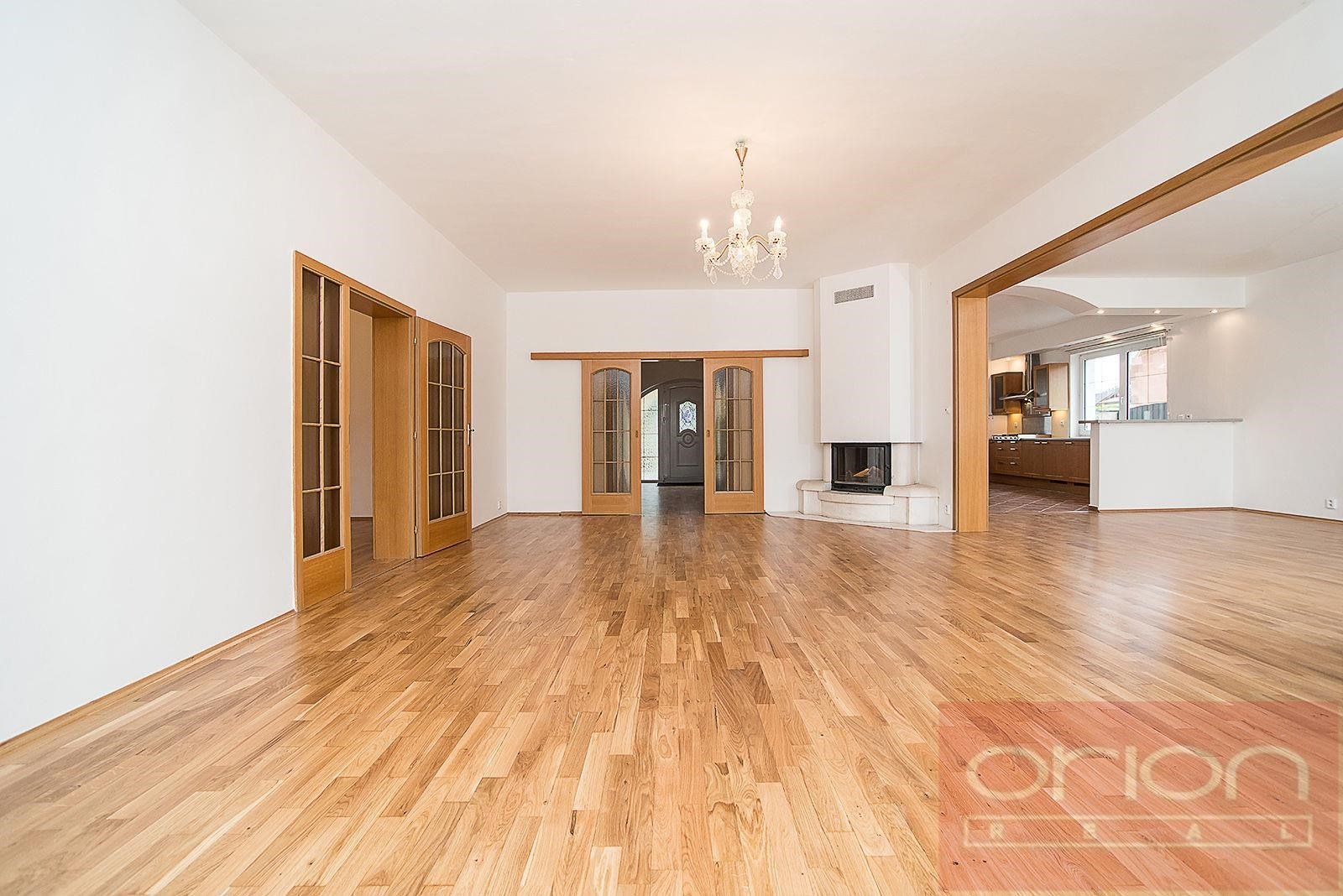 We offer for rent a luxury unfurnished family house five bedroom in a sought-after location in Prague 6 - Nebušice within walking distance of the international school ISP. The house has a total area of 400 sqm and offers on the main floor an entrance hall with a cloakroom, a spacious living room with a fireplace and access to the terrace and garden, a fully equipped modern kitchen with a dining room, a study, a bathroom with a jacuzzi and a separate toilet. On the upper floor there is a terrace of 15 sqm, 5 bedrooms, two of which have a shared bathroom with a shower and toilet, one of the bedrooms has access to a balcony, a separate bathroom with a shower and toilet, a dressing room with built-in wardrobes. The house has a residential basement, which can be used as a games room or gym and there is a technical facility with a gas boiler and a laundry room equipped with a washing machine and dryer. The house features wooden floors in the living rooms, high-quality tiles in the kitchen and bathrooms, an alarm, a garage for 2 cars and a well-kept garden of 850 sqm. The house offers pleasant living in Nebušice with good connections to the city center, the airport, and the Bořislavka metro station. The Divoká Šárka nature reserve is nearby.