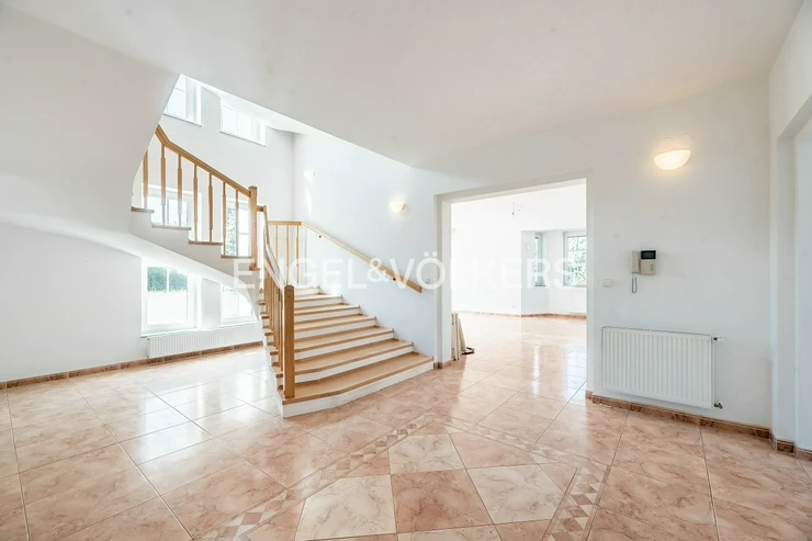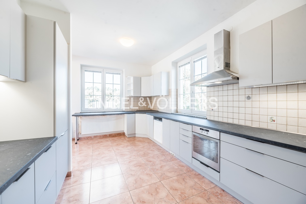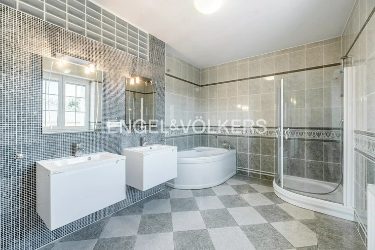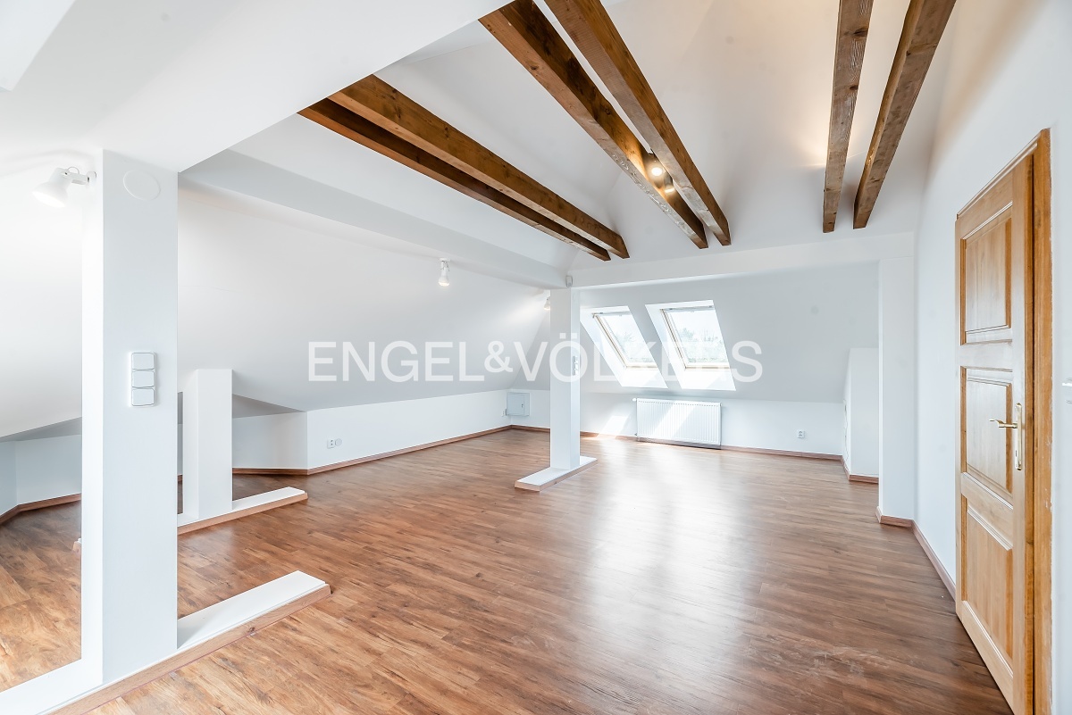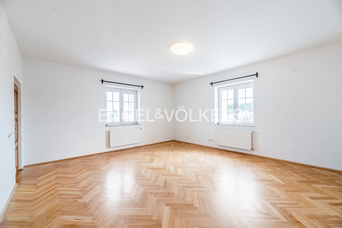 A luxurious villa in Průhonice with a layout of 7+kt. The villa with a built-up area of 210 sqm offers six bedrooms, four bathrooms with toilet, balcony, terrace, and double garage. The villa is surrounded by a beautiful garden. On the plot of 747 sqm, there is also the possibility of parking two vehicles.