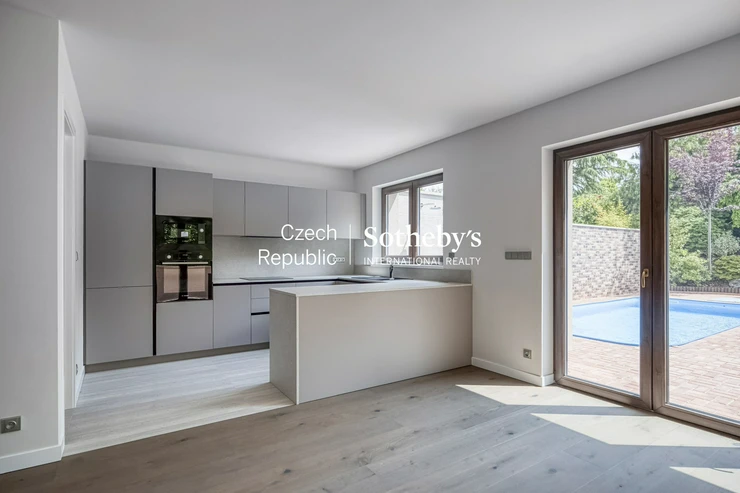 Sotheby’s International Realty Czech Republic nabízí k pronájmu moderní rodinný dům s bazénem a upravenou zahradou, nacházející se v prestižní rezidenční lokalitě Praha 6 – Nebušice. Dům je situován v klidné ulici v docházkové vzdálenosti od mezinárodní školy International School of Prague, což z něj činí ideální volbu pro rodiny s dětmi.