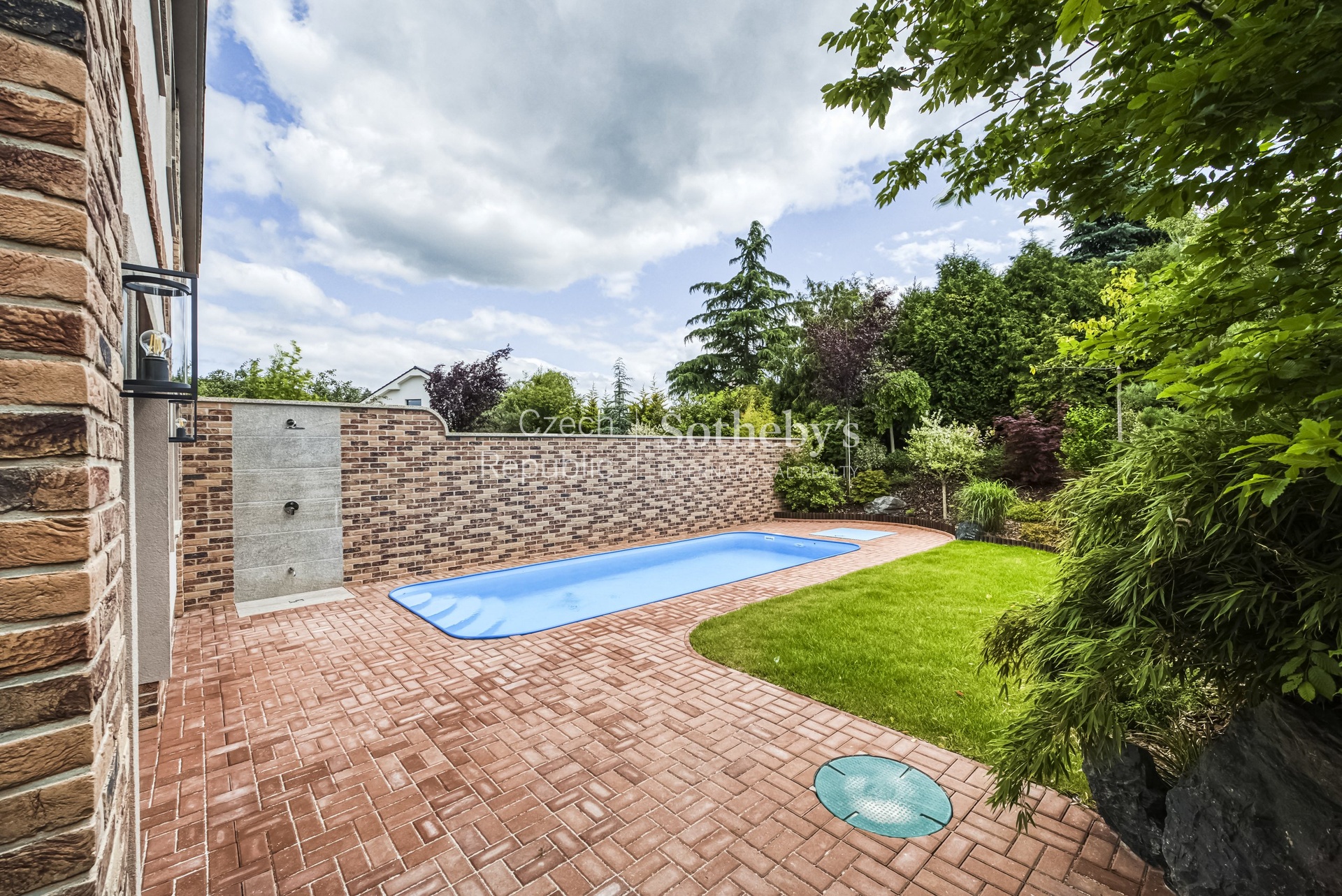 Tento dvoupodlažní dům o dispozici 5+kk disponuje celkovou užitnou plochou 184,3 m2 a stojí na pozemku o velikosti 432 m2. K relaxaci slouží soukromý bazén se slanou vodou o rozměrech 7 × 3 metry, terasa orientovaná do tichého vnitrobloku a plně automatizovaný zavlažovací systém, který zajišťuje bezúdržbovou péči o zeleň.