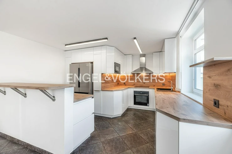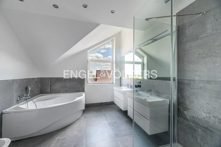 The property has undergone a complete renovation. The location provides very quick public transport connections to the city center while remaining outside its hustle and bustle. Nearby are the Deutsche Schule Prag and Václav Havel Airport.