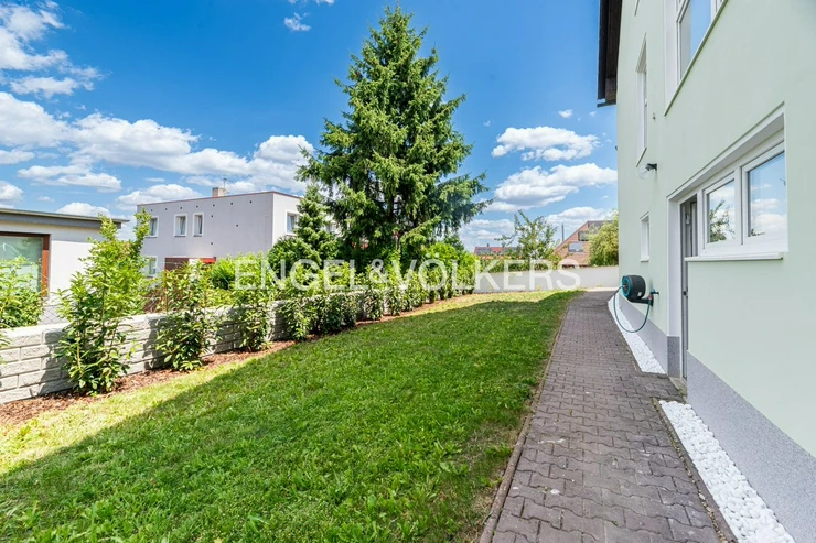 A generous family home located in a quiet part of Stodůlky, near the “B” metro line station Lužiny. The house spans four levels. The basement offers a spacious garage with a prepared electric car charger, a utility room with a new gas boiler, and several smaller rooms suitable for storage.