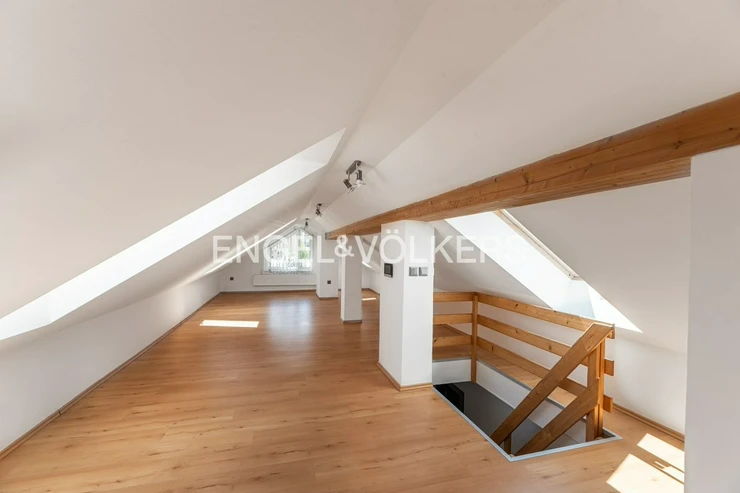 The attic level offers an open space, ideal as a children's playroom, a home office, or an additional bedroom.