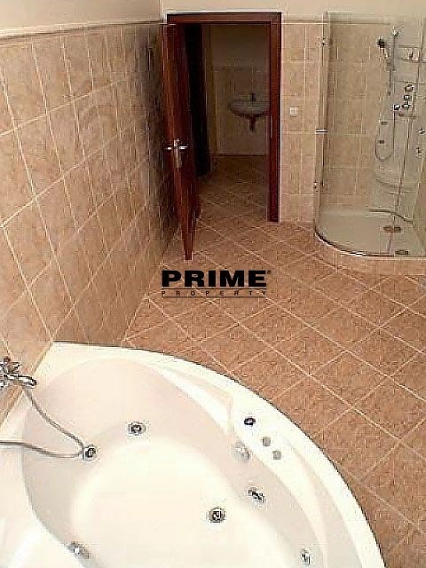 The top floors of the property have nice views of Prague. The ground floor of the property comprises: an entrance hallway, a 38m2 living room with access to a patio, a fully fitted kitchen with appliances (electric cooking hobs, oven, refrigerator, microwave oven and a dishwasher), a bathroom and a separate WC. The 1st floor: a hallway, three bedrooms, a bathroom (with a jacuzzi bathtub and a shower cubicle) and a separate WC. The 2nd (loft) floor: a hallway, two bedrooms and a bathroom. The basement comprises: a guest bedroom or a fitness room, a bathroom (with a shower cubicle and a toilet), a storage room, a boiler room and a garage for 2 cars. The property also has 3 balconies.