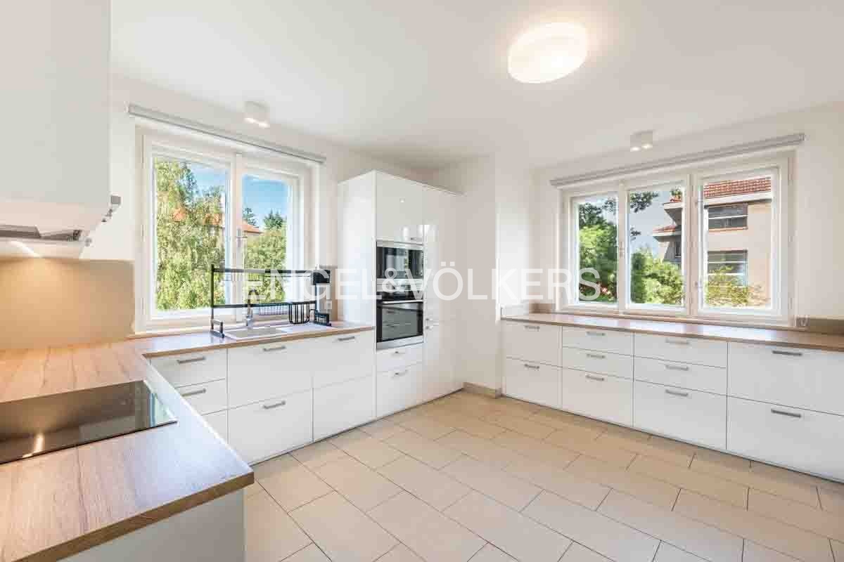 Elegant 7+kt villa with an area of approx. 277 m² with a mature garden and garage for 2 cars in the popular location of Malvazinky, Prague 5.