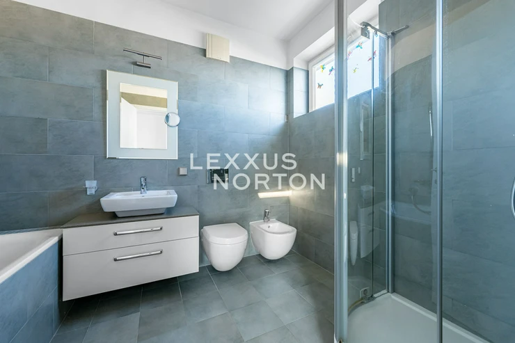 We offer for rent a partially furnished semi-detached 4-bedroom house with a layout, located in one of the most sought-after residential areas of Prague 6 – Hanspaulka, in a quiet part of Dejvice. This attractive area offers complete civic amenities, excellent transport accessibility, and abundant greenery in the immediate vicinity, ensuring pleasant and comfortable living.This spacious 4-bedroom house offers a generous living area of 219 sqm and is an ideal choice for comfortable family living in a luxury design. On the entrance level, there is an entrance hall, bedroom, terrace with beautiful views of Prague, ideal for relaxation, and access to the garage. On the first floor, there is a master bedroom, two additional bedrooms, a bathroom, and a utility room. On the garden level, there is a spacious living room with a fireplace, a kitchenette, a dining area, a pantry, and direct access to the terrace and garden, a storage room, a utility room, and a toilet.The entrance hall is equipped with a built-in wardrobe. On the ground floor, there is a bedroom with its own bathroom, which is equipped with a bathtub with a shower screen and a toilet. The master bedroom on the first floor offers a built-in wardrobe and a spacious bathroom with a bathtub, shower, bidet, and toilet. The bathroom on the first floor has a shower and toilet. The kitchenette is fully equipped with appliances – a ceramic hob, oven, refrigerator, freezer, microwave, and dishwasher. The kitchenette is connected to the living room with a fireplace.The furnishings include wooden floors, interior blinds and electrically controlled window blinds, an awning on the terrace, a gas boiler, a laundry chute, a washing machine, an alarm, a videophone, and an outdoor storage room with a lawn mower. There is a garage for one car, one parking space on the property, and a well-maintained garden with an area of 305 sqm, which provides complete privacy and space for leisure activities.The desirable Prague district of Prague 6 - Dejvice is made up of first-republic apartment buildings. The location has excellent transport accessibility. Tram stop Zelena is located 4 minutes from the house. The Dejvicka metro station can be reached on foot in 15 minutes. Thanks to good road connections, it takes 13 minutes by car to the motorway, 20 minutes to the Vaclav Havel Airport, 10 minutes to the shopping and entertainment centre Novy Smichov, Stromovka. In the vicinity you will find all civic amenities (theatres, supermarkets, doctors' offices, pharmacies, restaurants, cafes, playgrounds, local shops).The amount of billable monthly deposits is CZK 3.000 + electricity and gas are transferred to the tenant.The inquiring client agrees to pay a commission of 1 month's rent plus VAT.If you are unable to view the property in person, we also offer you a video tour from the comfort of your home in real time via Messenger, WhatsApp and other communication platforms.