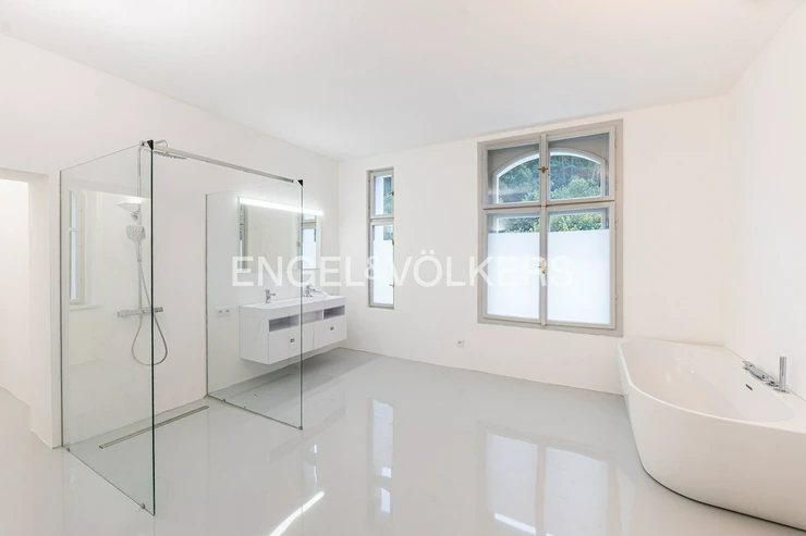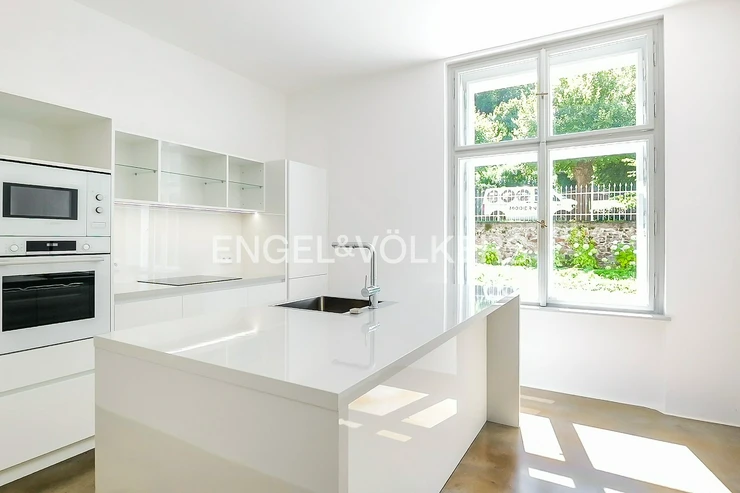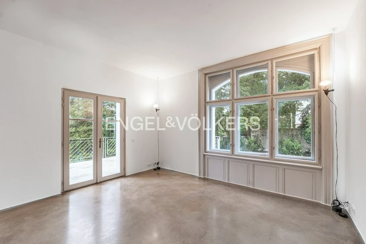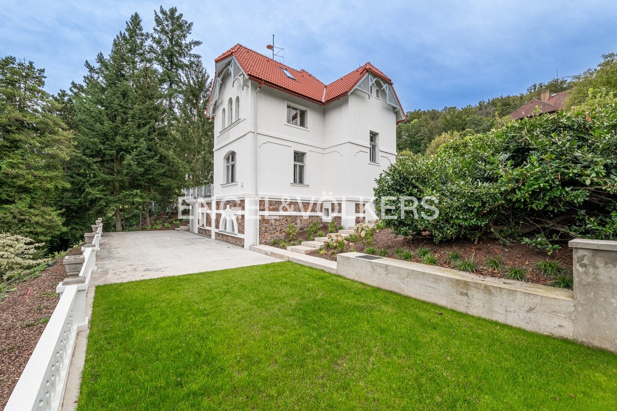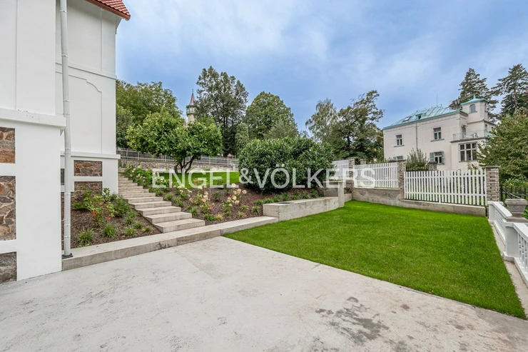 We offer for long-term and medium-term rent an Art Nouveau villa after complete reconstruction with a layout of 6+1 in a quiet residential area of Všenory. The reconstruction was designed by an architect to preserve the original Art Nouveau elements such as staircase, windows and facade details in combination with modern minimalism. The location of the villa allows good accessibility to the city centre from Dobrichovice train station to the main train station in Prague (30 minutes). The villa has BOSCH appliances and FLOS lights, an alarm system throughout the house, a washing machine and dryer, the possibility of retrofitting the interior, and even the addition of a swimming pool.