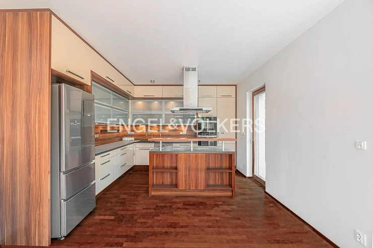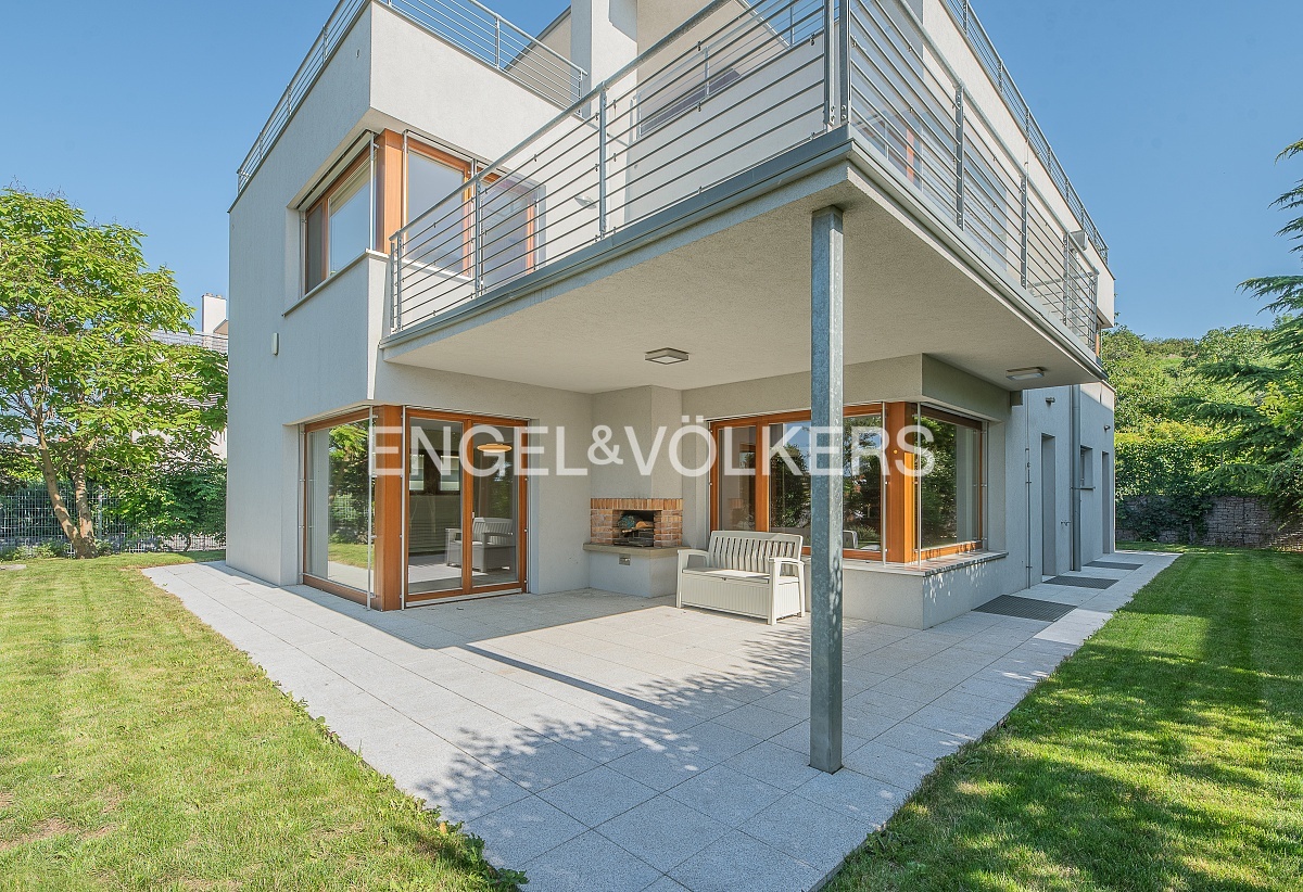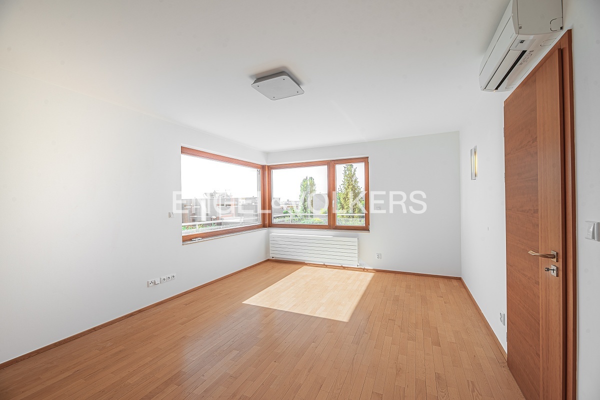 A superior family house in a quiet location of Jinonice is ready for immediate rent. Spacious house with five bedrooms, four bathrooms, a living room with a kitchen and three terraces.