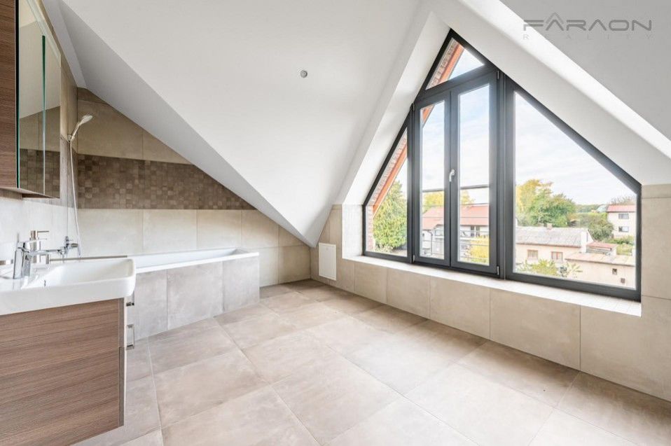Rent of a three-storey newly renovated and partially furnished villa (380 m), 7+kk with a large garden, with two garages in the Prague West - Kosoř area, which is a quiet location in close proximity to Prague, ideal for family living.