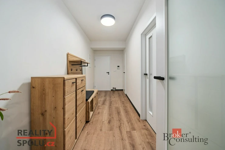 Interiér tohoto bytu byl navržen s citem pro moderní bydlení a obsahuje veškerý nadstandardní komfort, který můžete očekávat. Od prostorné vstupní chodby, přes obývací pokoj s otevřeným spojením k jídelnímu koutu a kuchyni, až po koupelnu se sprchovým koutem a WC. Ložnice a dětský pokoj s vestavěnými skříněmi dodávají tomuto prostoru další úroveň luxusu.