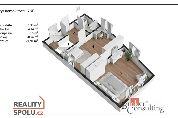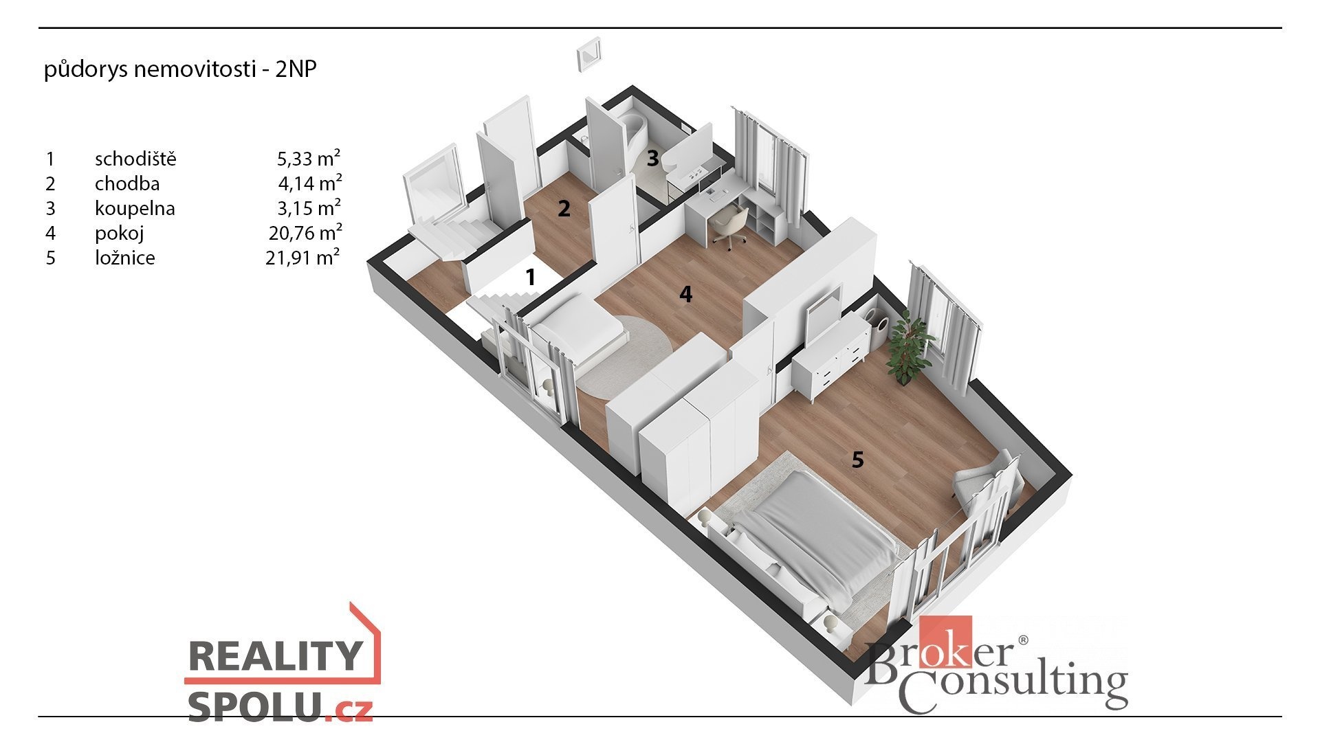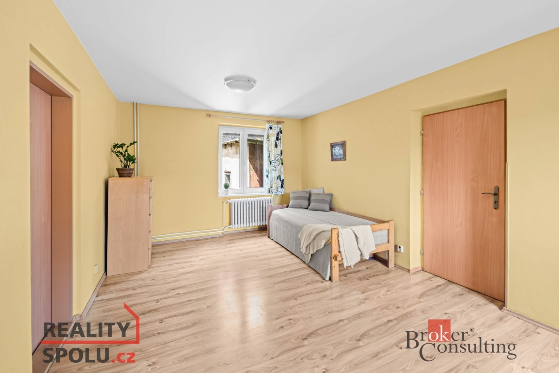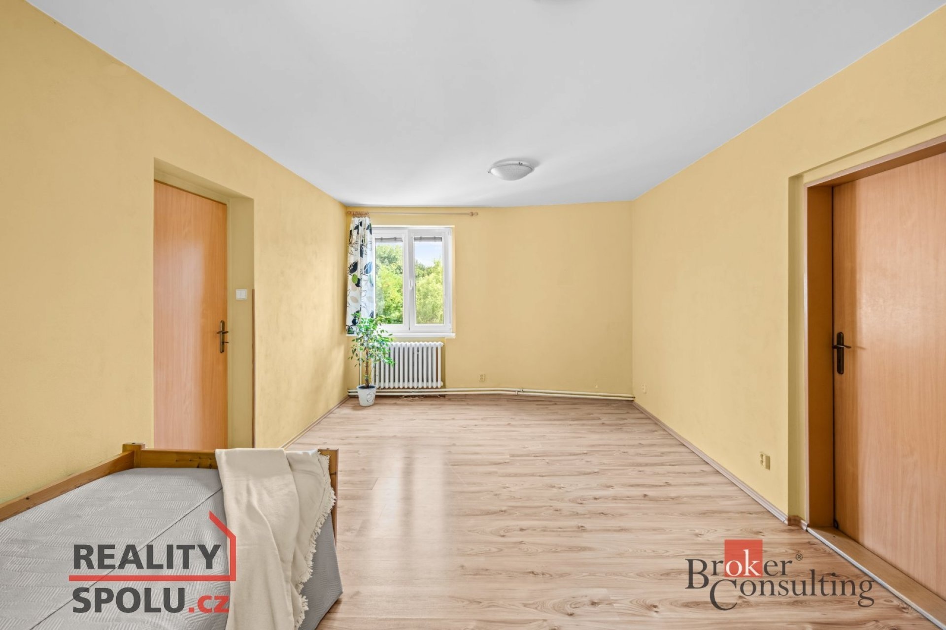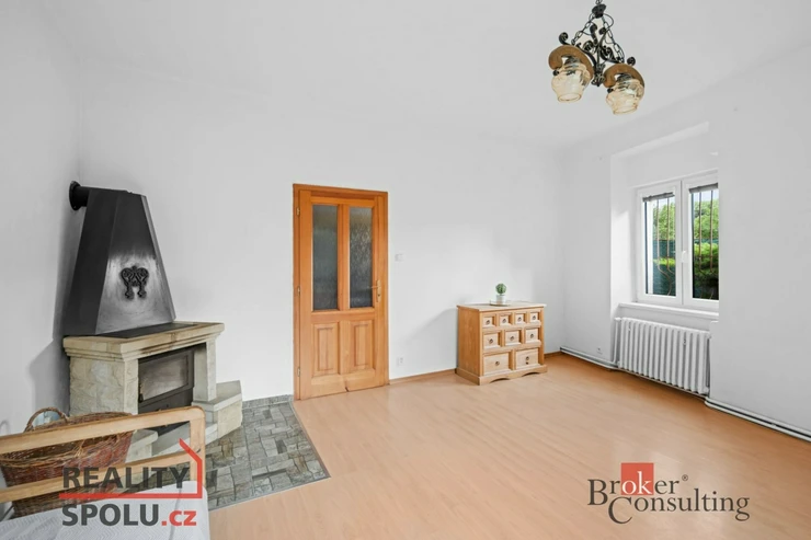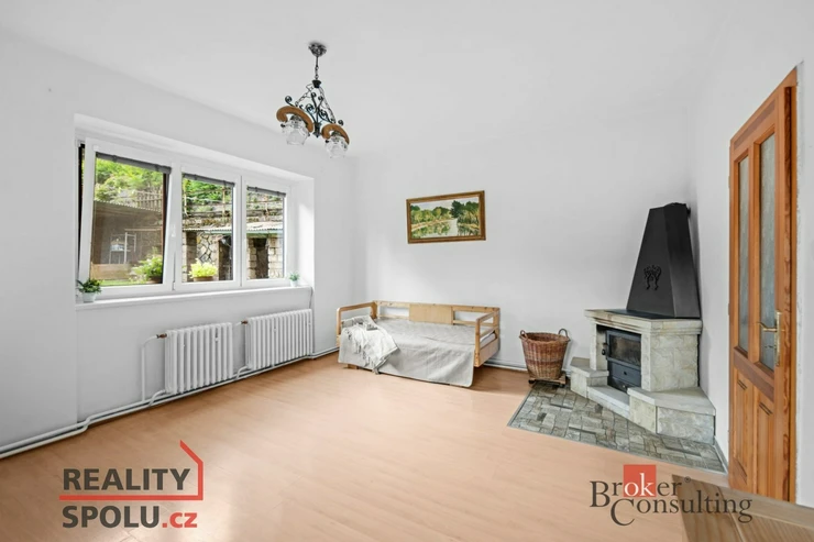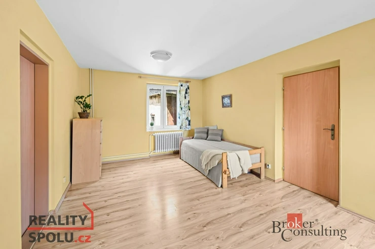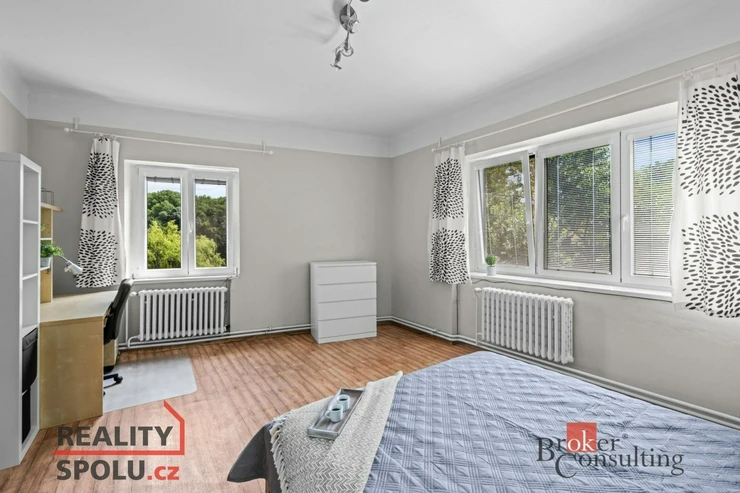 Z vybavení na fotografiích v domě zůstává: kuchyňská linka (kromě lednice a myčky), velká šatní skřín v horní ložnici. Jinak budou pokoje prázdné a připravené na nastěhování.