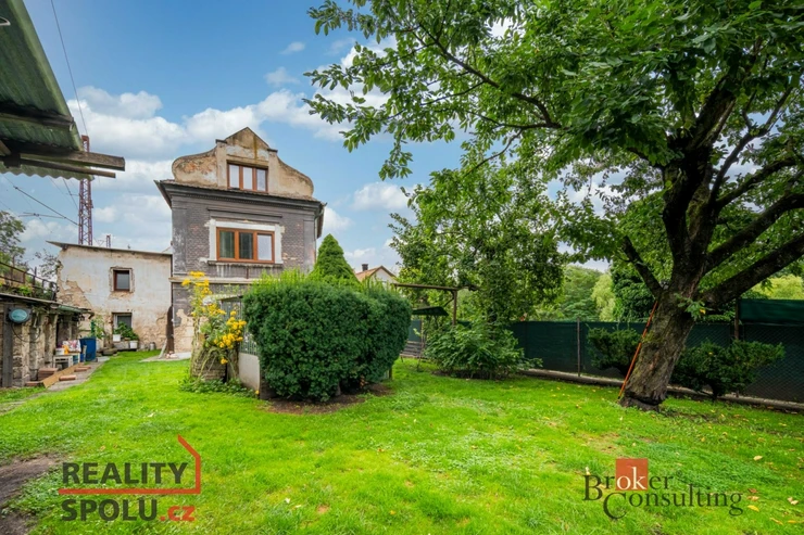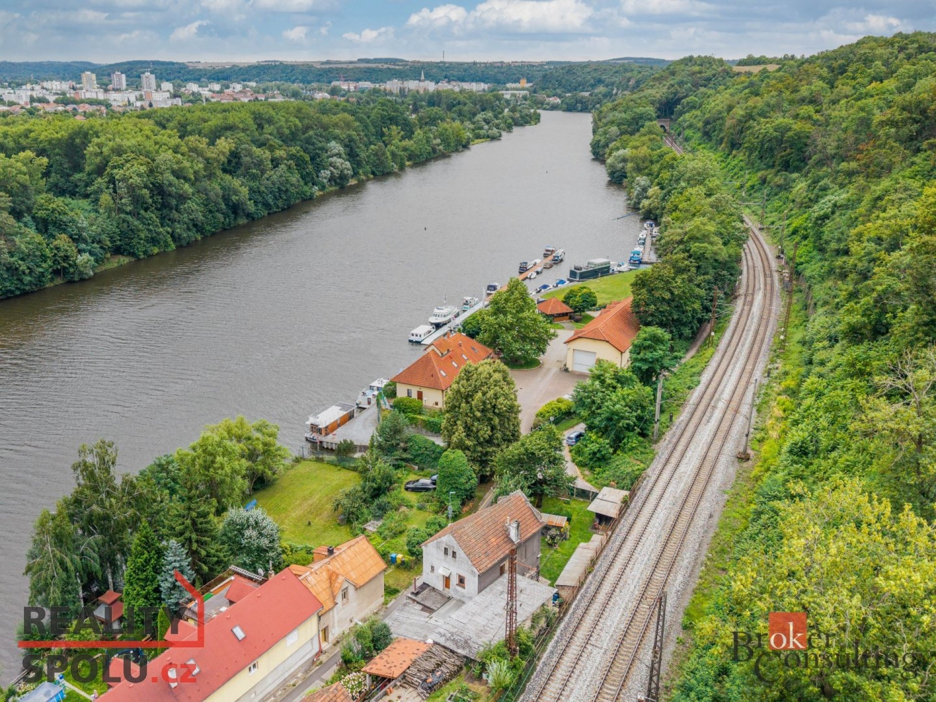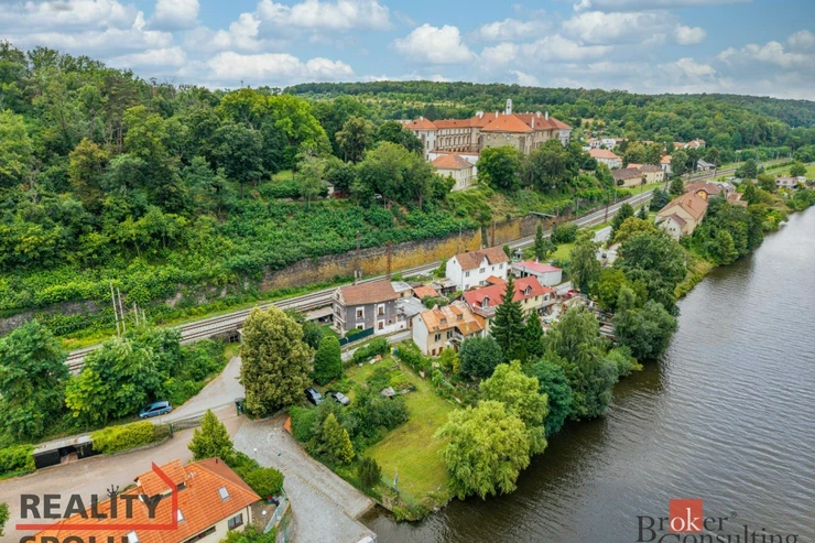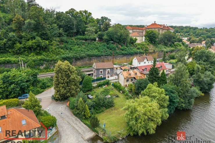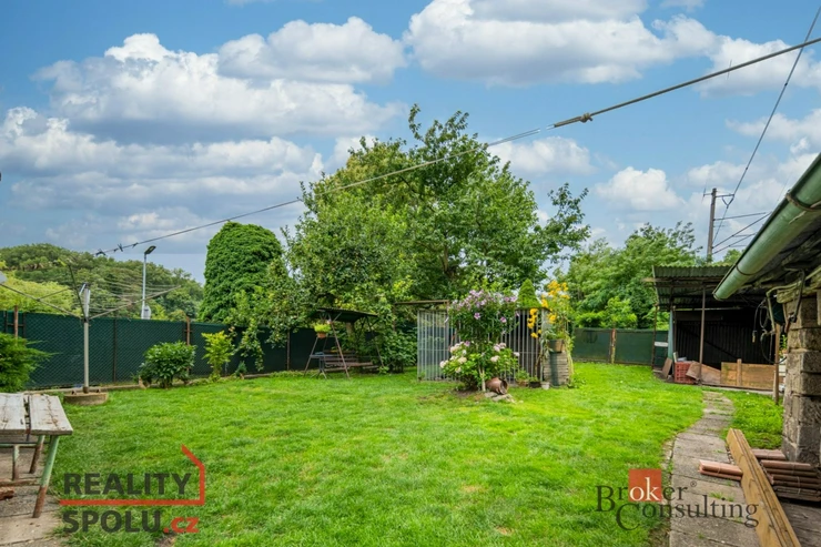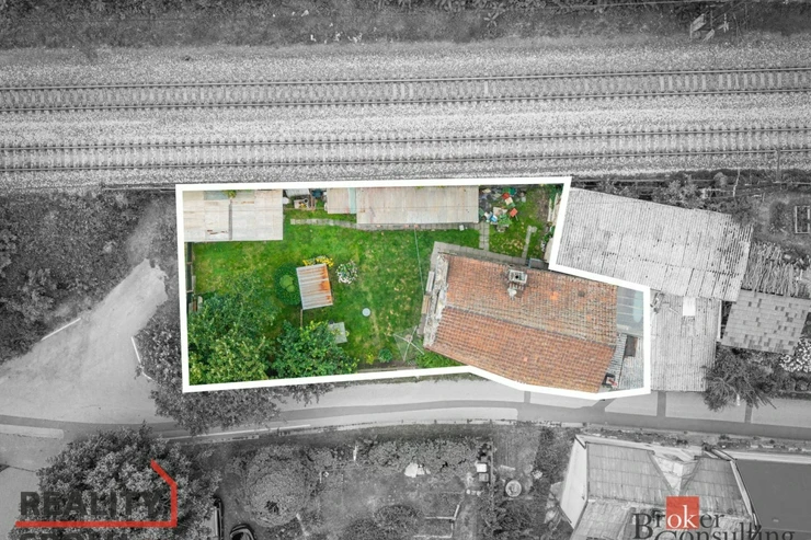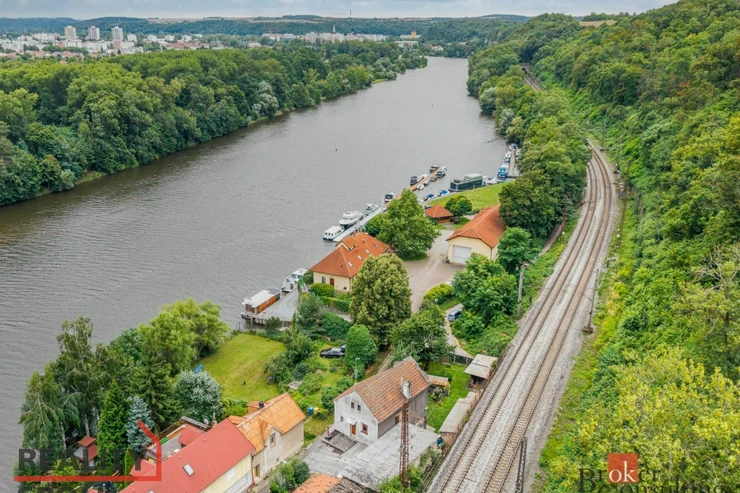 Za domem se rozkládá menší zahrada, vhodná k odpočinku, pěstování nebo jako zázemí pro děti. Je však potřeba počítat s tím, že přímo za domem vede železniční trať. Přestože to znamená vyšší hlukovou zátěž, přináší to také mimořádnou dopravní výhodu – vlaková zastávka „Nelahozeves zámek“ je vzdálena jen pár minut chůze a nabízí rychlé spojení do Prahy, kam se dostanete za zhruba 35 minut. Autem je to přibližně 25–30 minut na severní okraj Prahy (Letňany, Kobylisy).