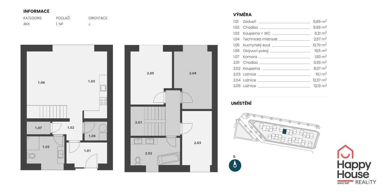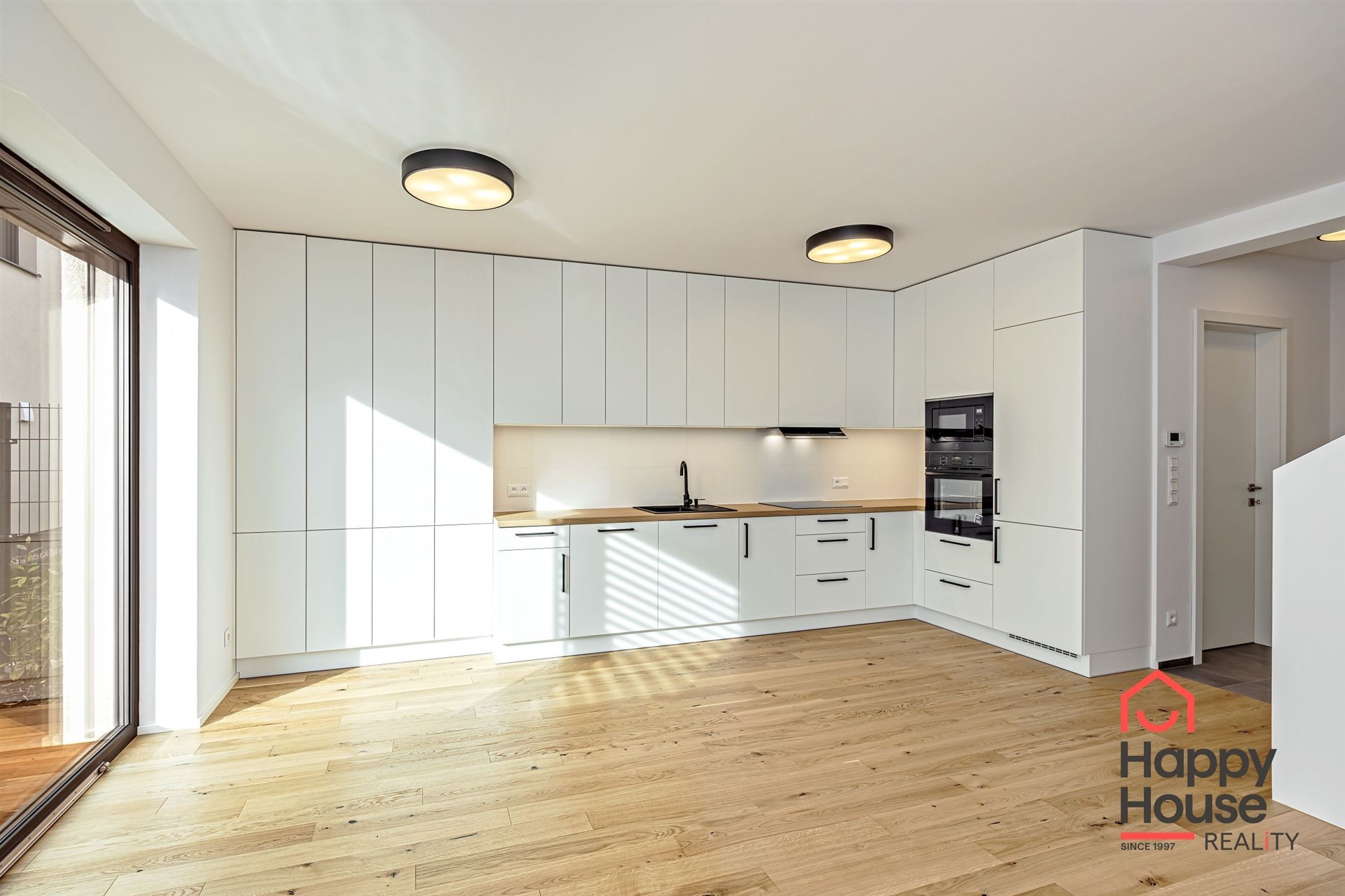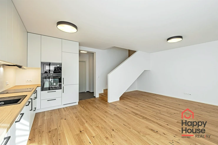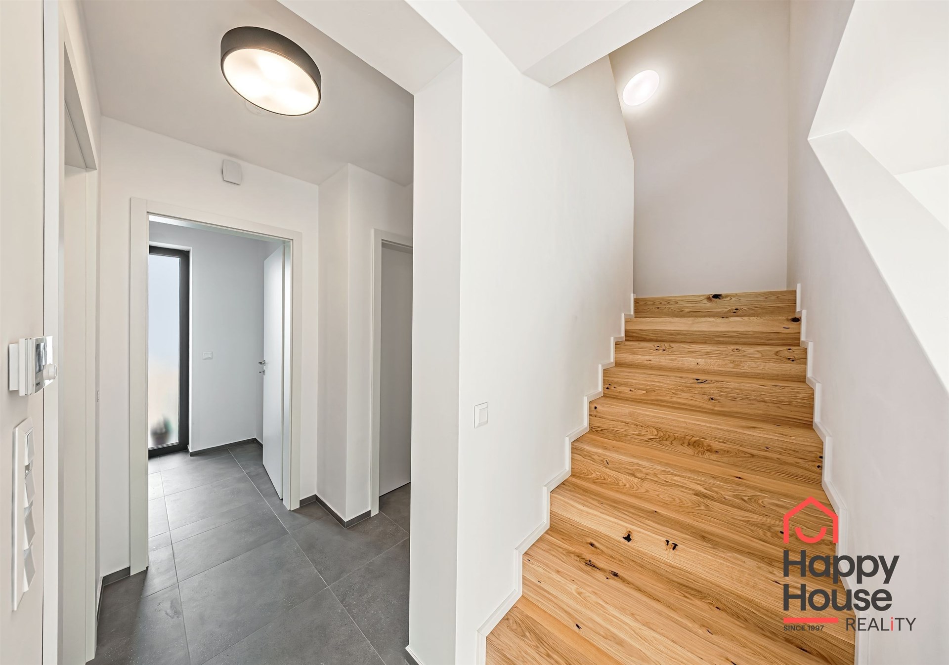 We offer for rent a new modern two-storey terraced family house 4+kitchenette with 3 bedrooms (105.2 sqm of usable area) which offers 2 parking spaces on its own plot in front of the house. South-facing garden (58.7 sqm) with a terrace made of tropical wood and freshly planted bushes. A street and a field facing to the north, peripheral development project in a newly emerging district of Residence Kolovraty in Prague 10.