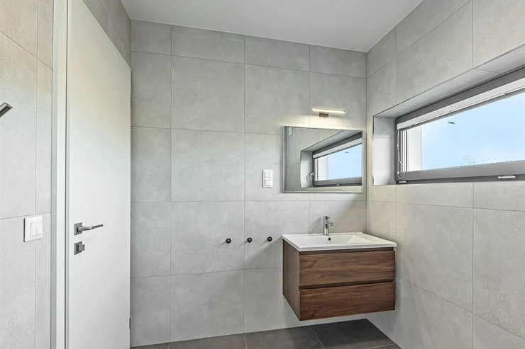 On the first floor you find a hallway of 3.93 sqm, a bathroom of 8.07 sqm (bath tub, 2 sinks, toilet) and 3 separate bedrooms measuring 12.37 sqm, 12.13 sqm and 10.1 sqm.